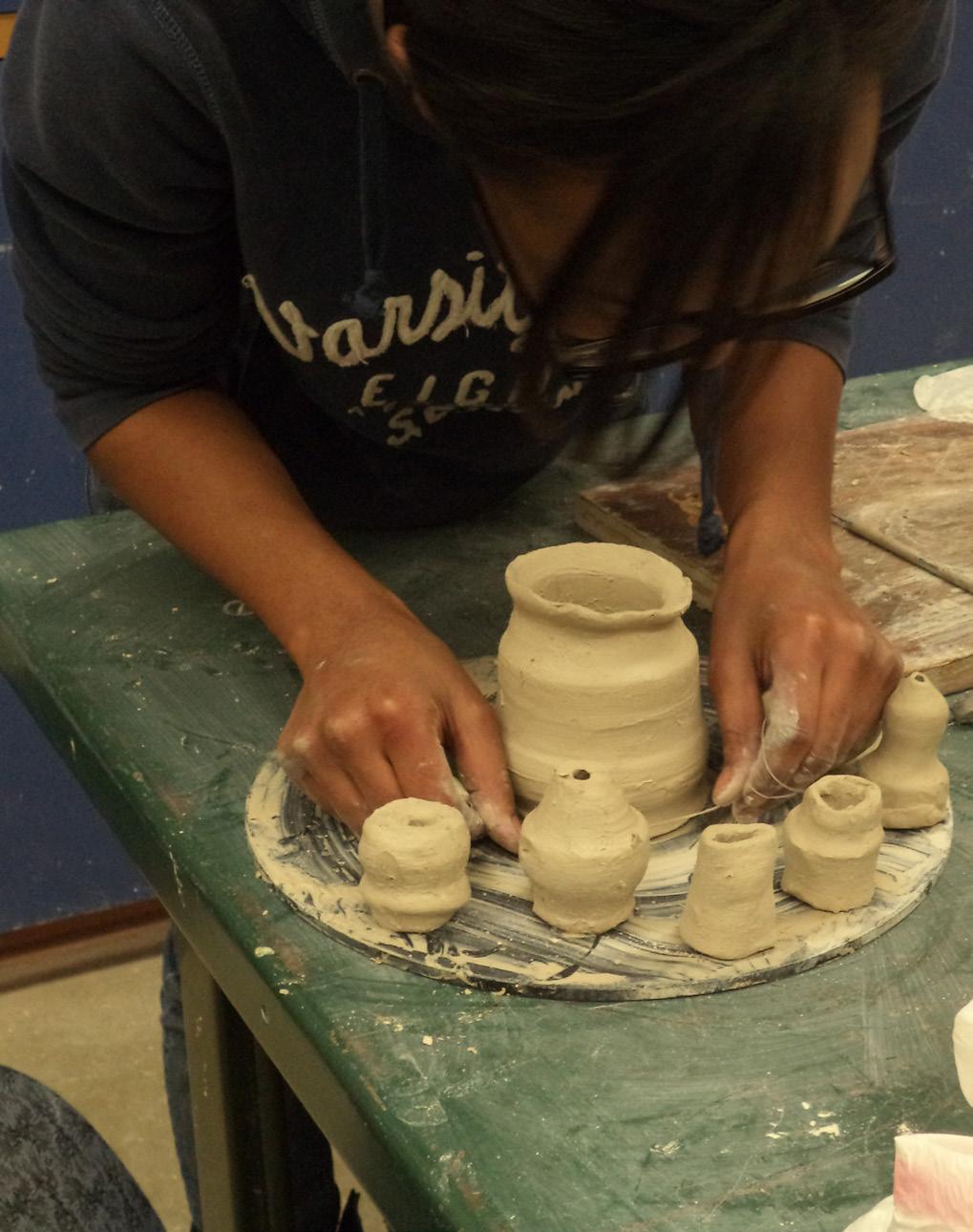 pieces rinsed from the student’s hands. Some students dig their own clay to use.