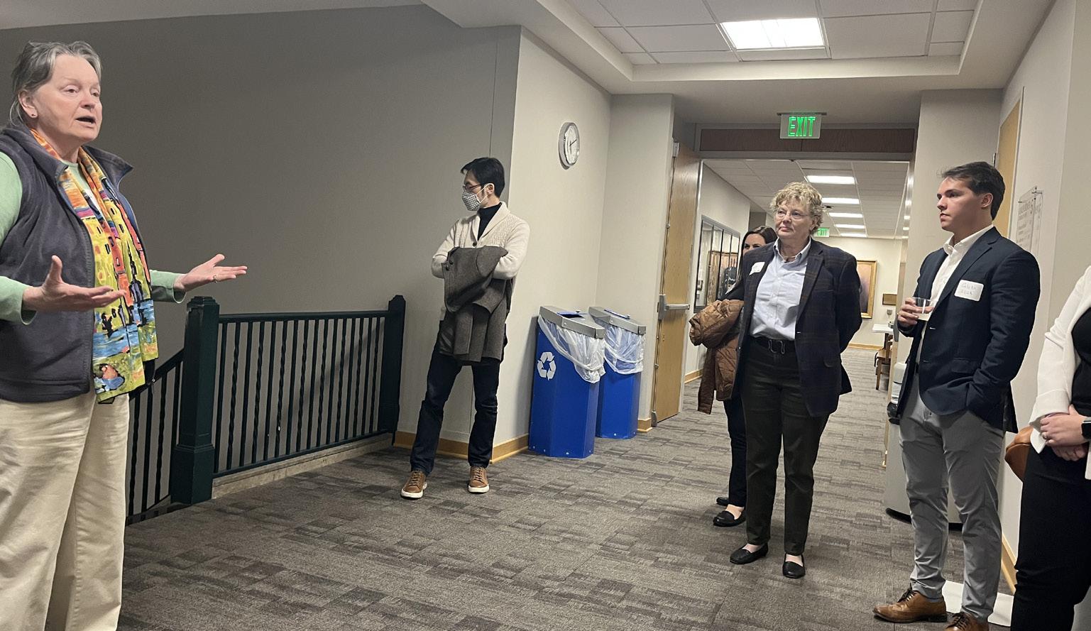After conversing for a few minutes and enjoying a few finger foods, the first permanent female Dean of the school, Theresa M. Bainer, introduced the event and