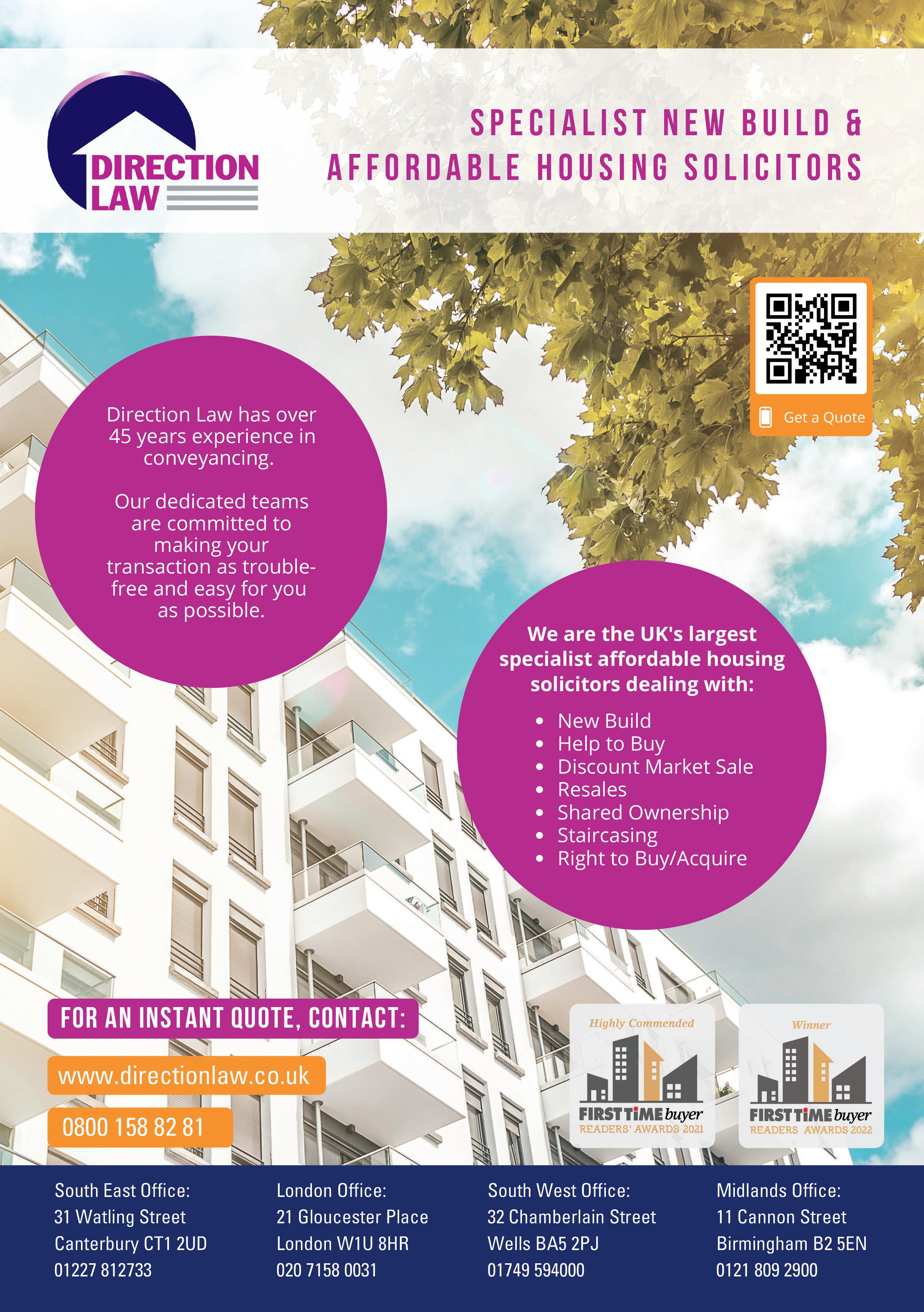 Coralie Phelan, Partner and Head of New Build Homes at Prince Evans Solicitors LLP, explains the key conveyancing terms used at each stage of the transaction. 100 Directory Where and how to contact your homebuying agents or providers. 106 20 Questions We ask 20 quick-fire questions to a legal expert and in this issue