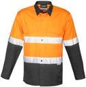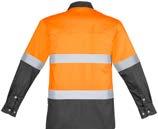 150 gsm mid weight cotton twill to keep you cool while still being tough enough for any job Vic rail compliant tape configuration and orange shade Bio Motion arm taping for improved recognition of human shape at a distance Underarm and upper back mesh vent inserts Two chest pockets with button closures and pen partition Fade tested