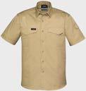 170 gsm mid-weight cotton twill to keep you cool while still being tough enough for any job Underarm and upper back mesh vent inserts Triple stitched seams Reflective tape in H configuration Two chest pockets with button closures and pen partition Extended curve shirt back