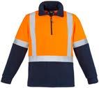 MENS ORANGE FLAME HI VIS 1/4 ZIP BRUSHED FLEECE PULLOVER - HOOP TAPED