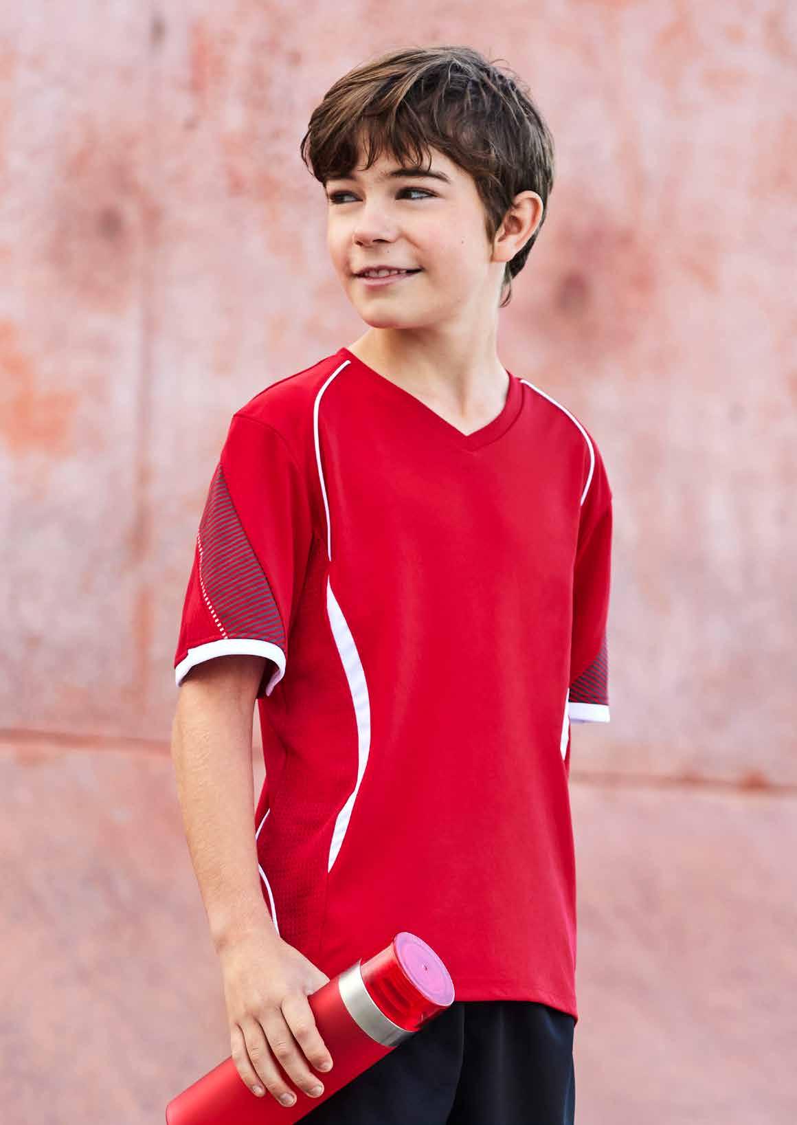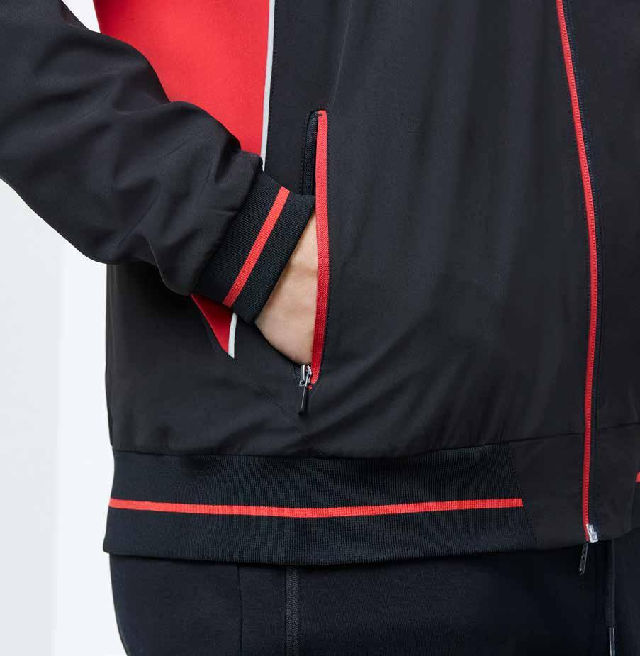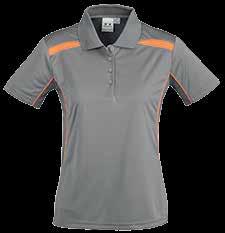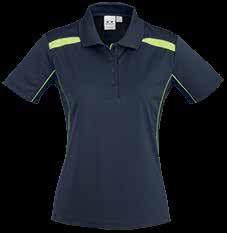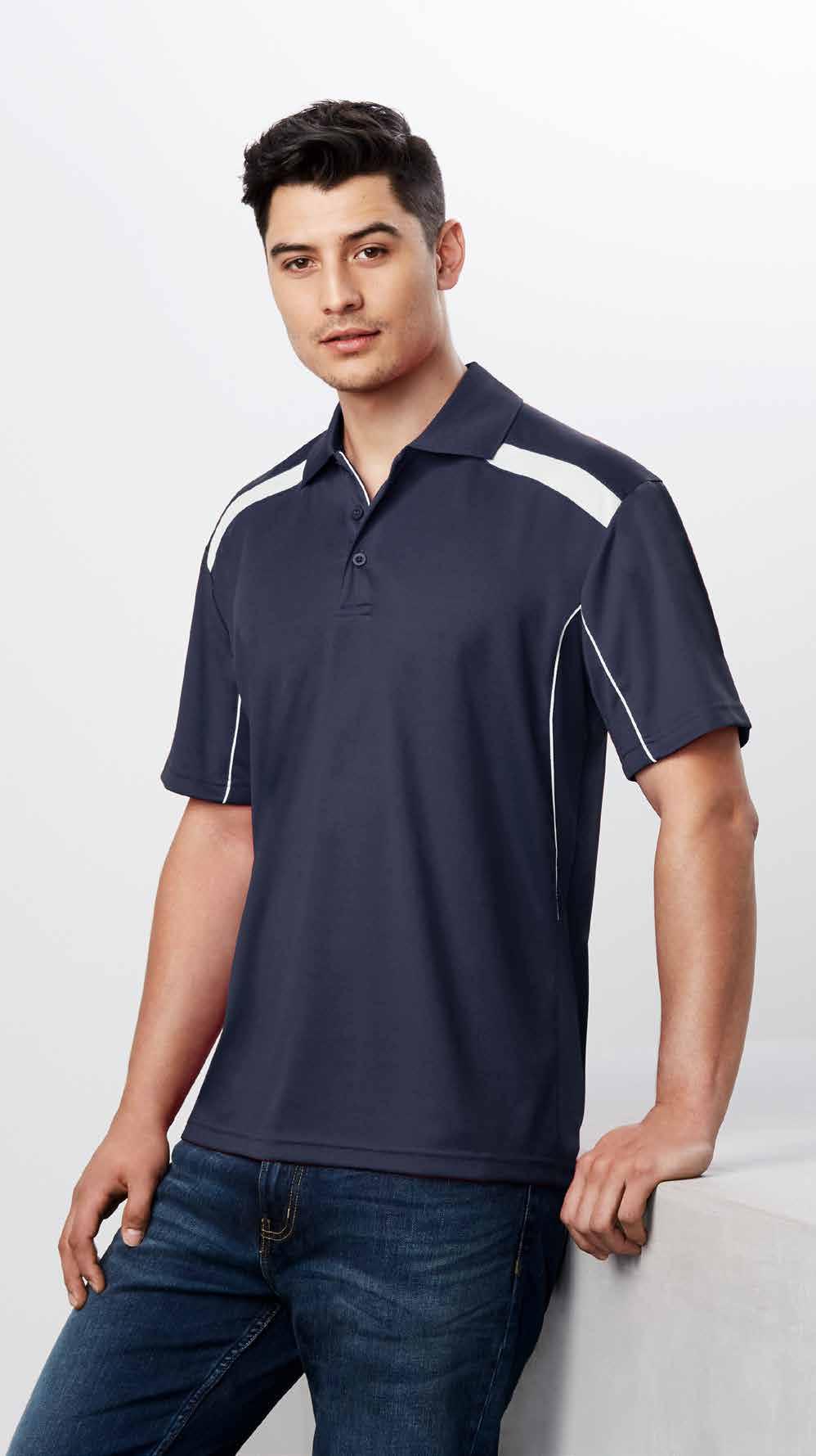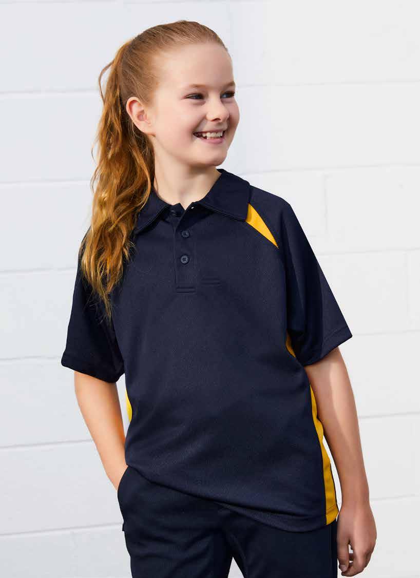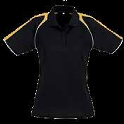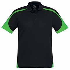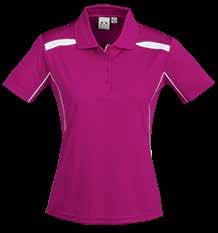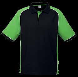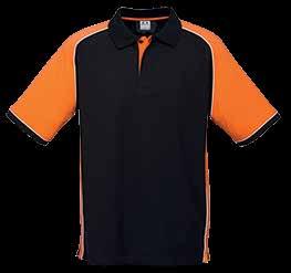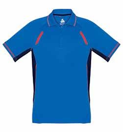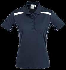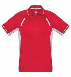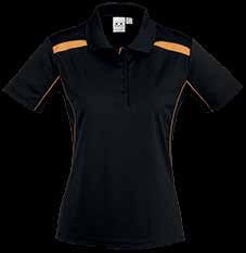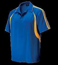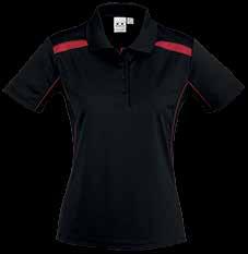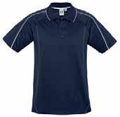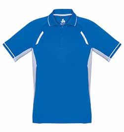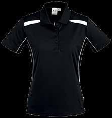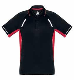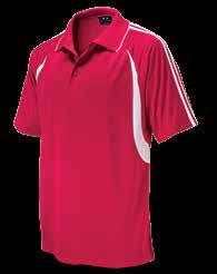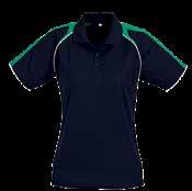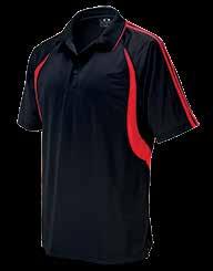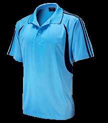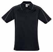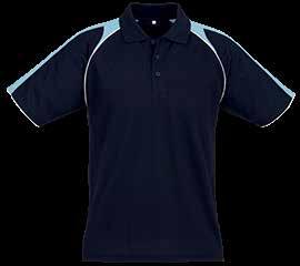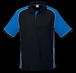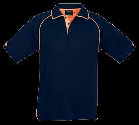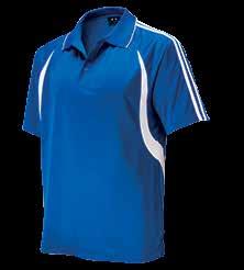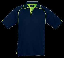 FEATURES Mens and Kids styles feature knit collar with contrast tipping and 3 button placket • Contrast twin stripe from shoulder to sleeve cuff • Contrast curved panel from underarm to back of garment • Side splits • Ladies style features open “V” placket with 2 press studs • Mens style includes loose pocket