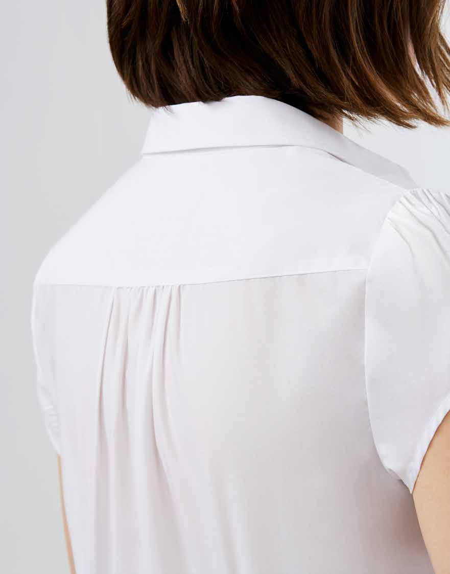 FEATURES Semi-fitted concealed button through front with 2 lower front pockets