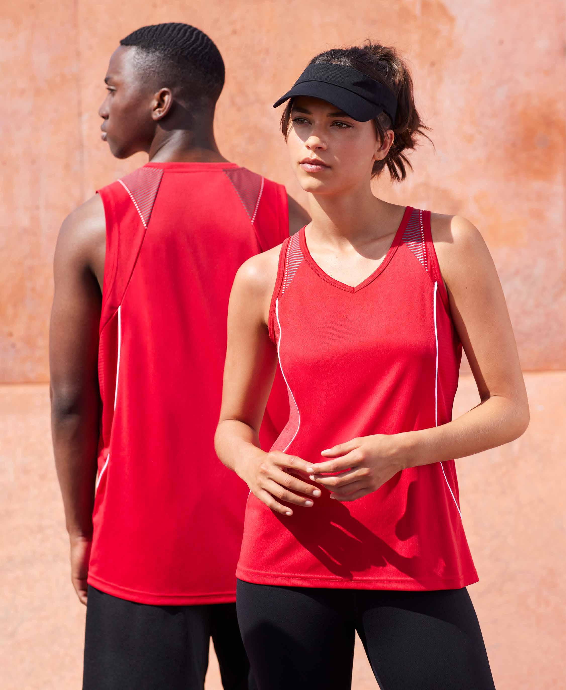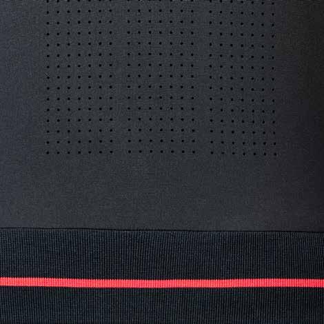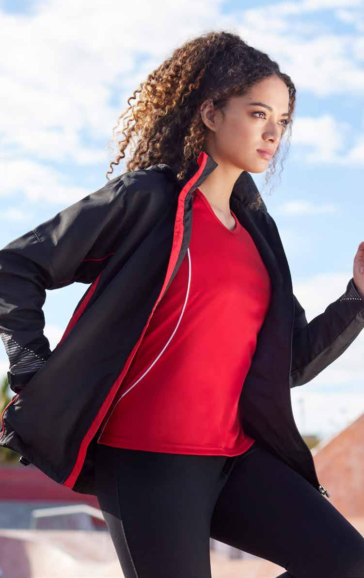 • Matching knitted collar • Back and underarm mesh panel inserts for breathability