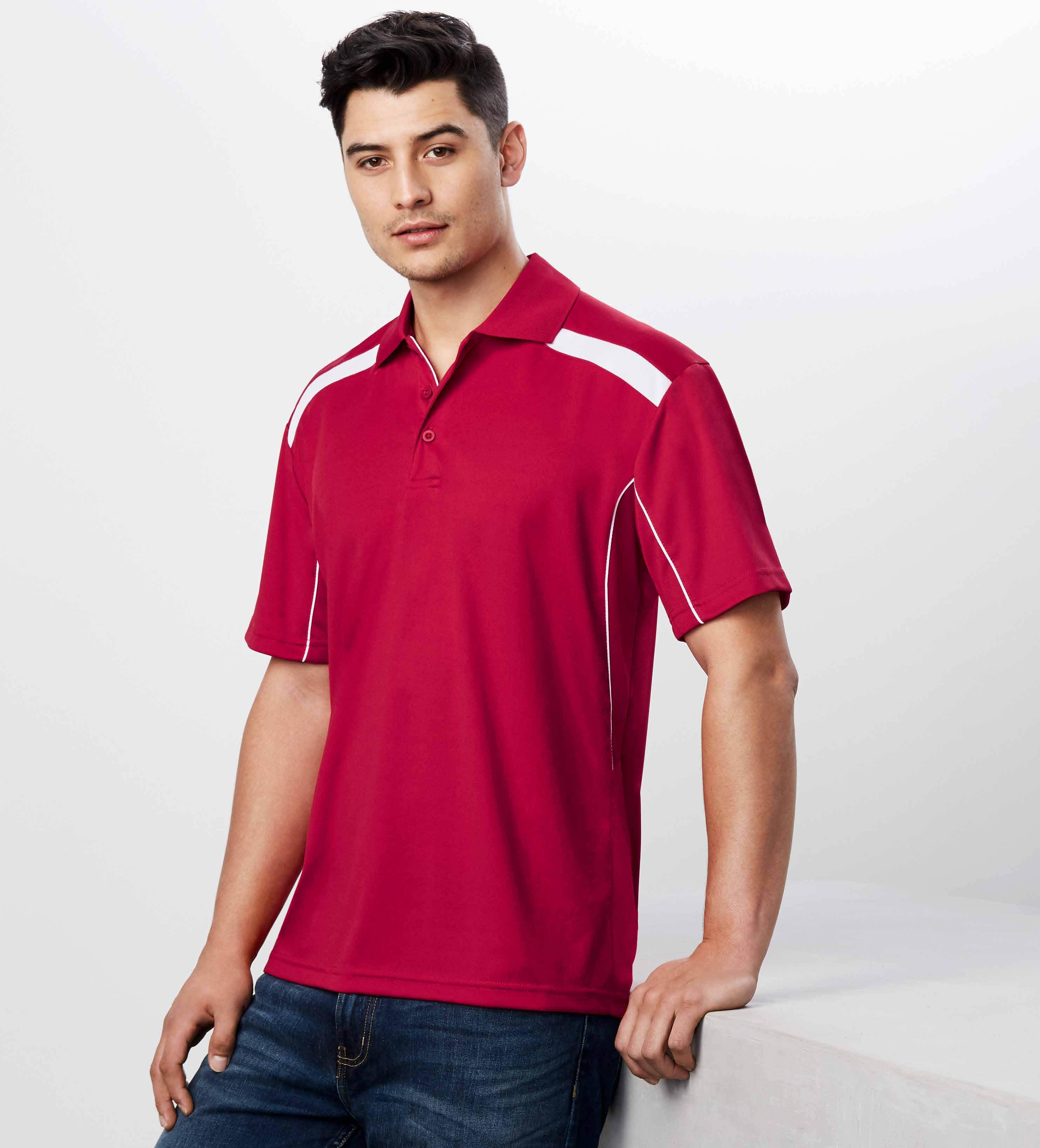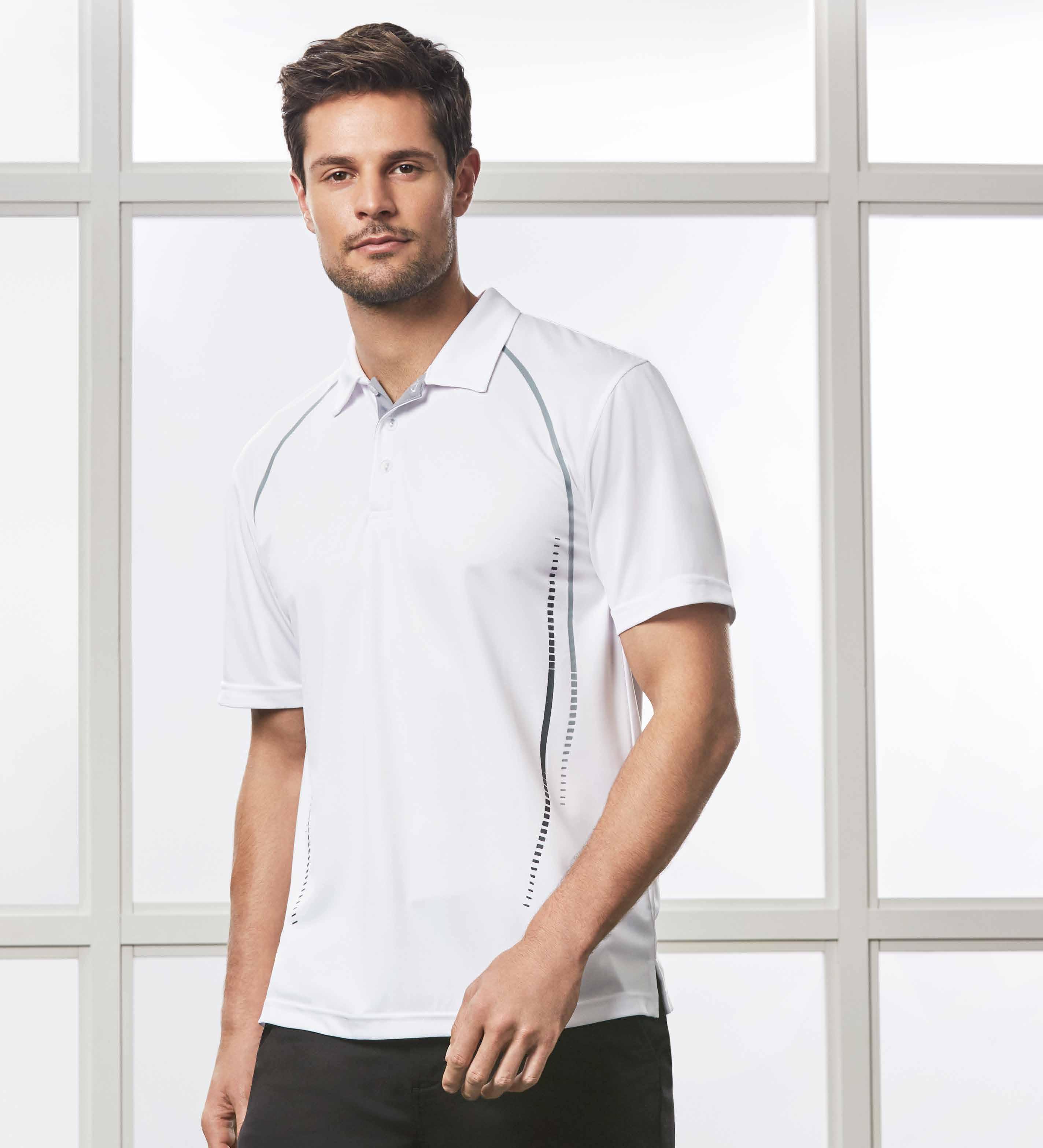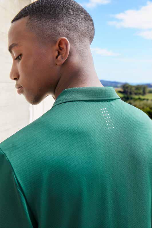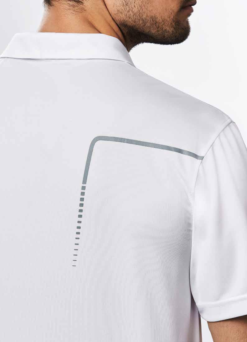 A polo that’s engineered for performance with sweat-wicking fabric and reflective details.