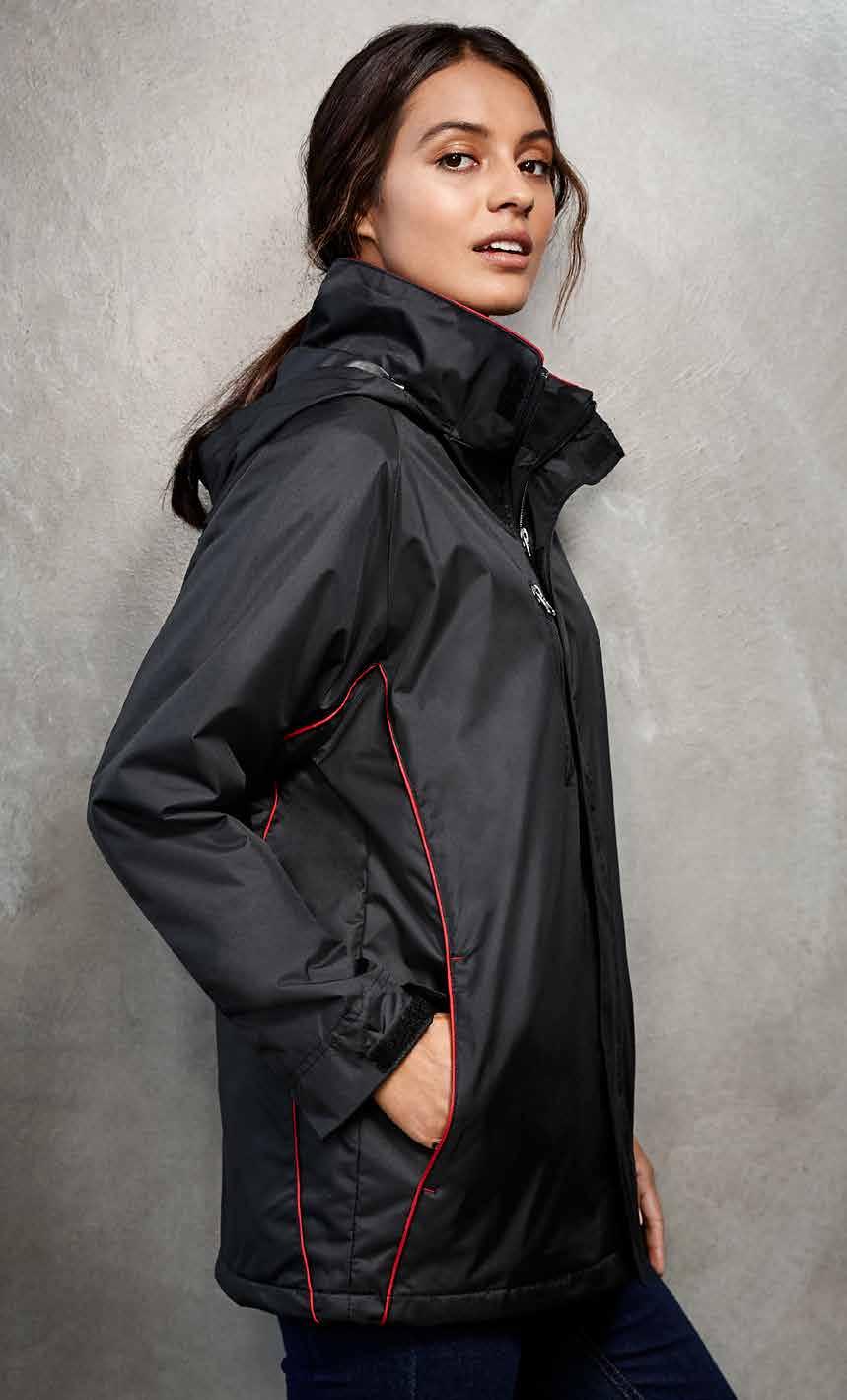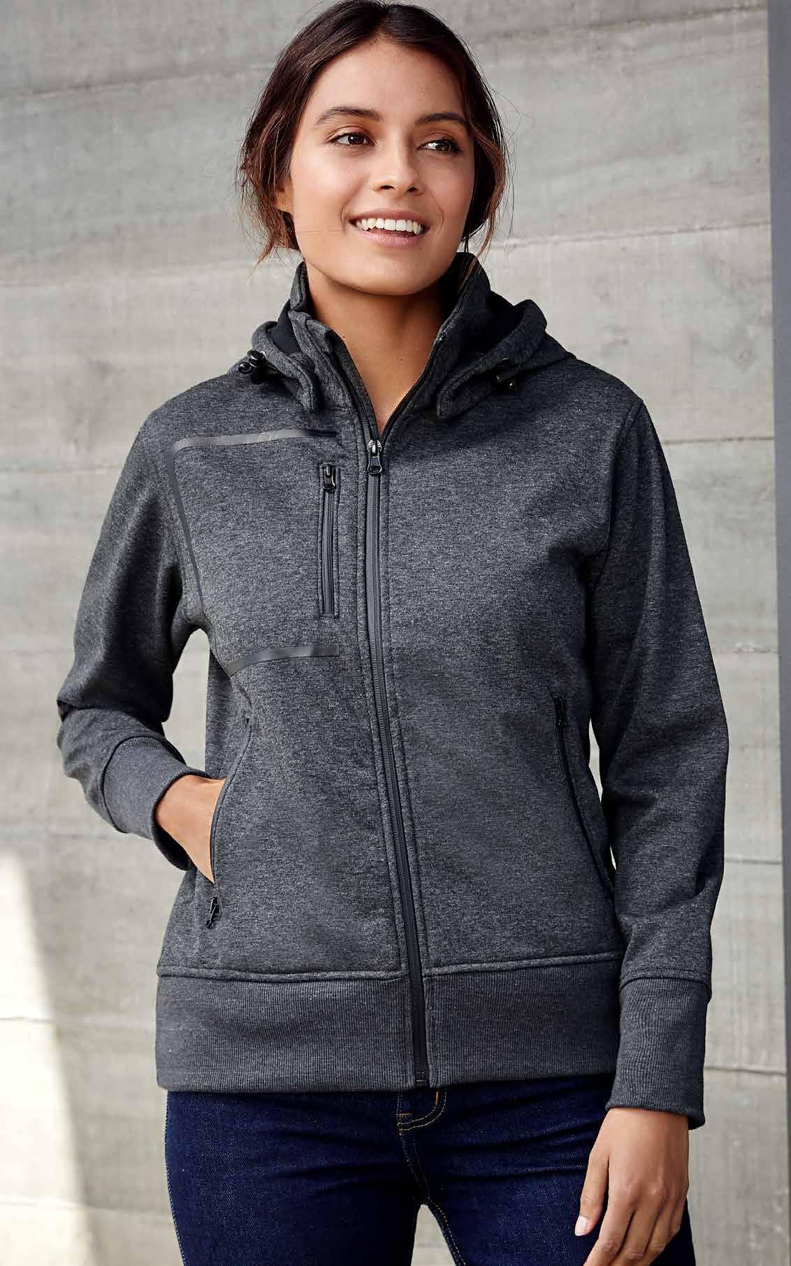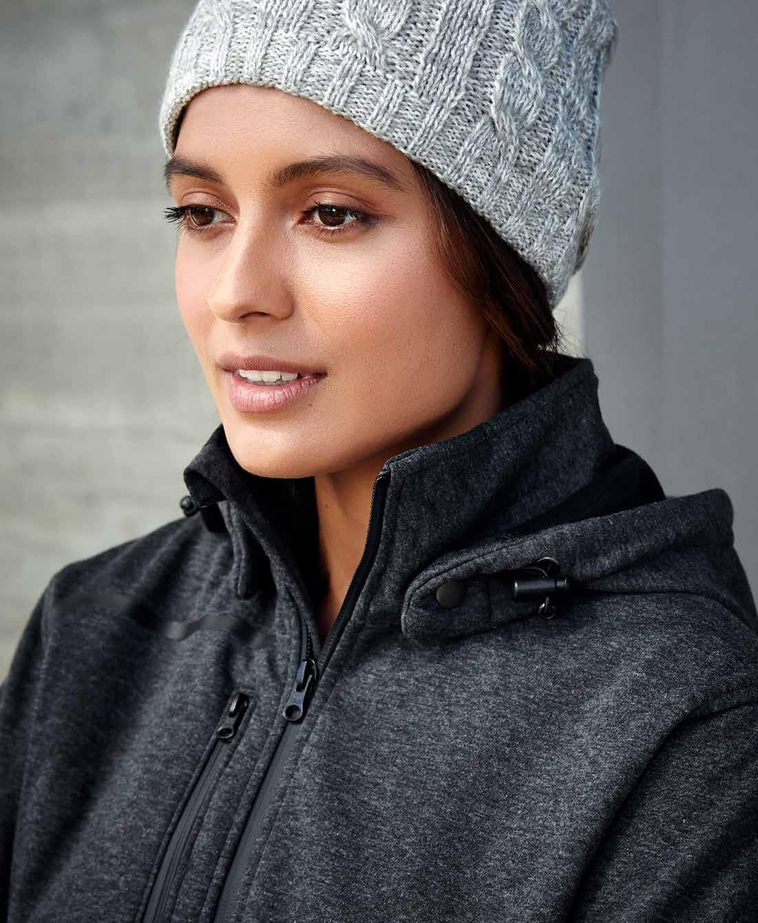 FEATURES Matching knitted collar • Durable flat lock raglan sleeve • Mens style includes loose pocket • Ladies style features slimline placket