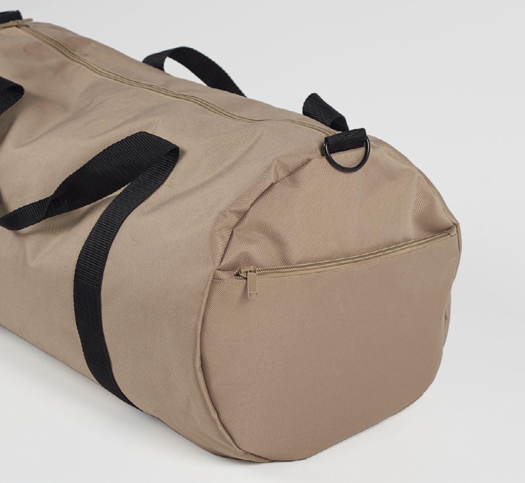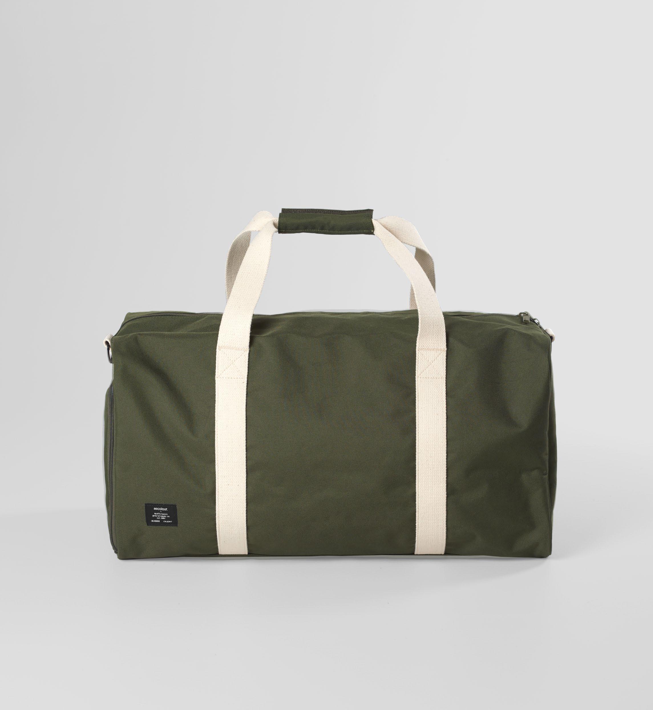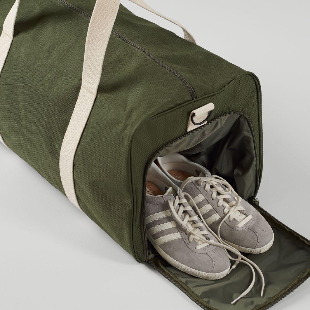 One large main compartment, one external zipped shoe compartment, YKK tonal nylon zip, reinforced cotton adjustable shoulder strap and handles