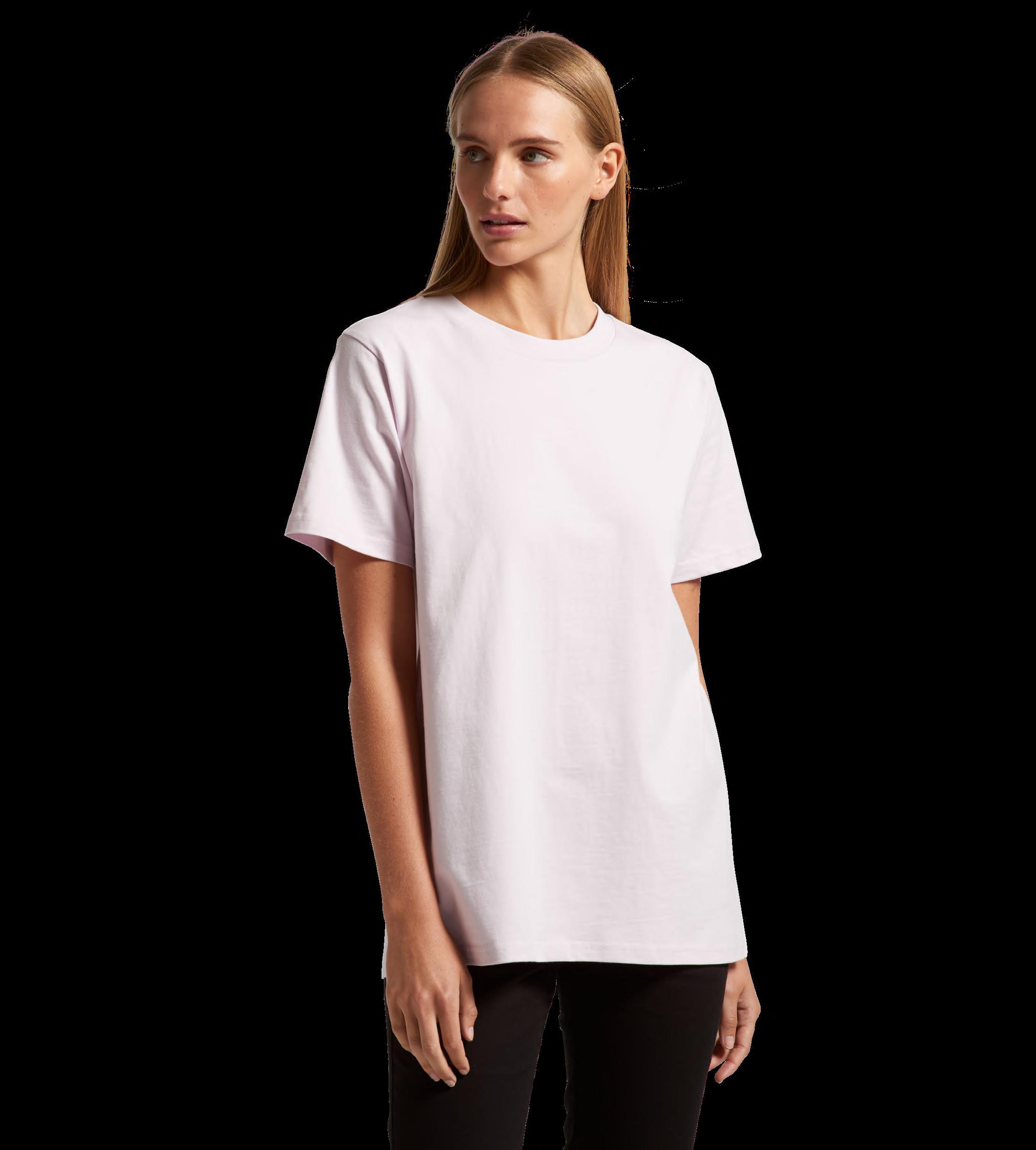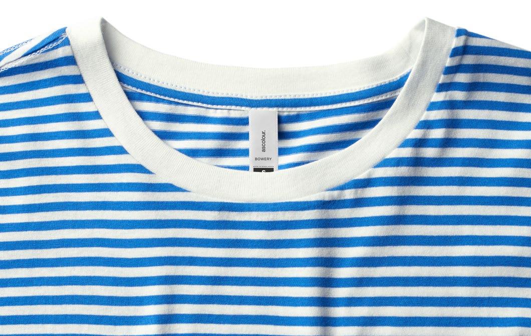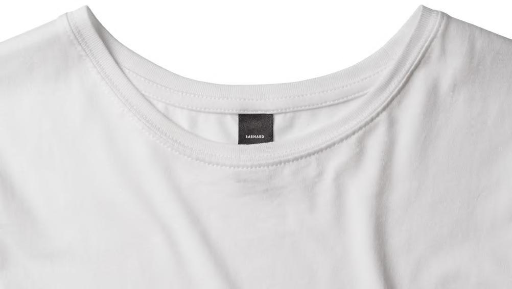 Neck ribbing, side seamed, shoulder to shoulder tape, double needle hems, preshrunk to minimise shrinkage