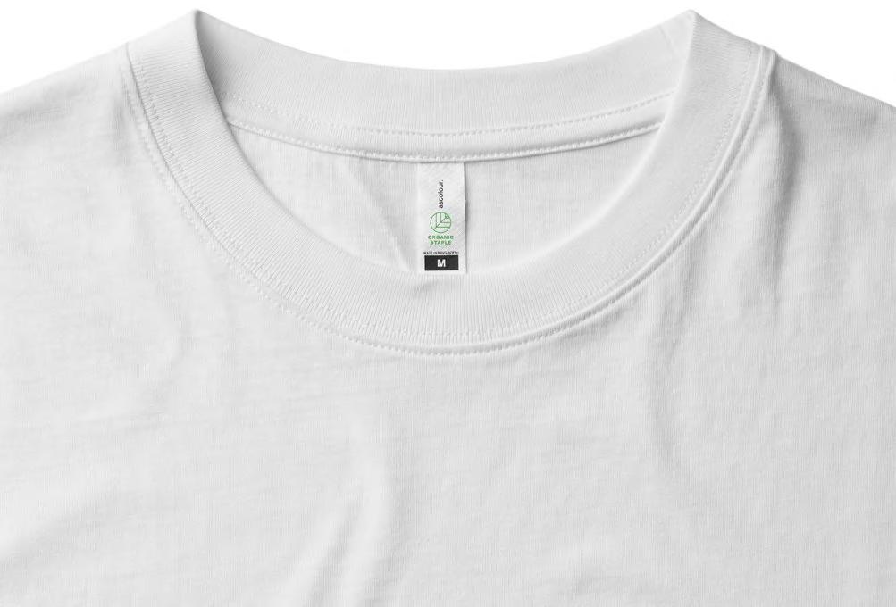 100% combed organic cotton (marles 15% viscose) Neck ribbing with twin needle stitch, side seamed, shoulder to shoulder tape, double needle hems, preshrunk to minimise shrinkage