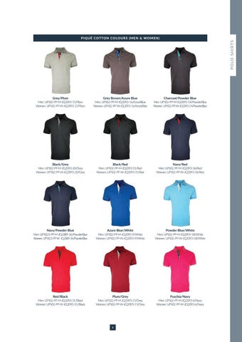 P I Q UÉ COTTON CO LO U R S ( M EN & WO M EN)