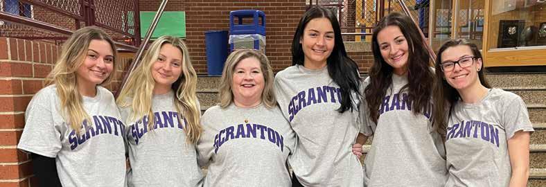 Congratulations to the Lady Royals on their unbeaten season of 27-0. Making their 35th overall tournament appearance in program history, Scranton swept the major Landmark Conference Awards for 2023. With PCPS’s very own Maddy Ryan (junior, early primary education) receiving Second-Team honors, she became the second student in the program’s history to receive the Defensive Player of the Year Award and is currently ranked seventh in the Landmark Conference in rebounds and 11th in scoring. Kaci Kranson (freshman, kinesiology) was selected to the All-Conference First Team and received Rookie of the Year accolades and is ranked top seven in the Landmark Conference in scoring and top two in free throws. Hannah Angelini, senior guard, ranks among the Landmark leaders in assists, rebounds, and steals. Both Karya Quigley and Angelini are captains of the Lady Royals and senior kinesiology majors. Other team members on the rise are kinesiology majors Morgan Brewer (sophomore) and Allie Lynch (junior), Mackenzie Steele (junior), occupational therapy, and Ashlen Bender (sophomore), nursing.