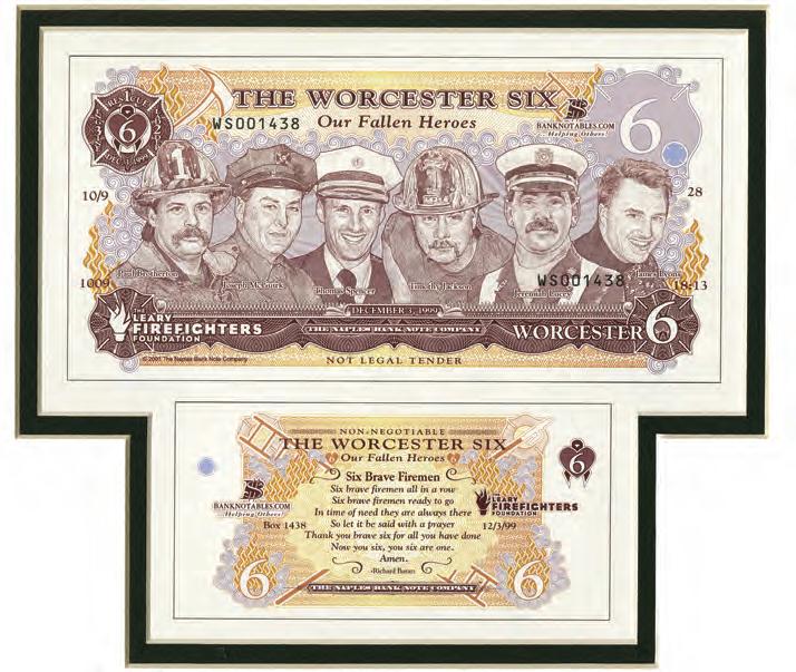 Commemorative item designed at the request of actor Denis Leary for a fundraising event for the families of the six firefighters who died in the 1999 Worcester Cold Storage and Warehouse Co. fire in Worcester, Massachusetts.