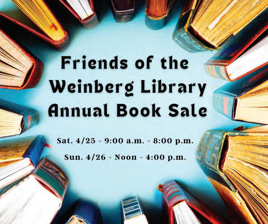 Did you know that the Friends of the Weinberg Memorial Library offers a mini book sale year-round at the rolling Friends of the Library Book Sale area? This shelving unit is in the vestibule of the rear entrance to the Library. Books are frequently added to this collection and available to purchase at the Library Services Desk when the Library is open. We hope you stop by to purchase a new-to-you read!