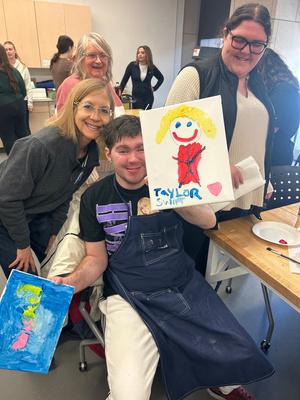 Dr. Patricia Wisniewski and junior OT student Meghan Martin coordinated a paint and sip with the local Scranton community. They wanted to provide adults in the community with intellectual disabilities an opportunity to express themselves and connect with Scranton OT students. Students and participants were able to build a connection through art and juice!