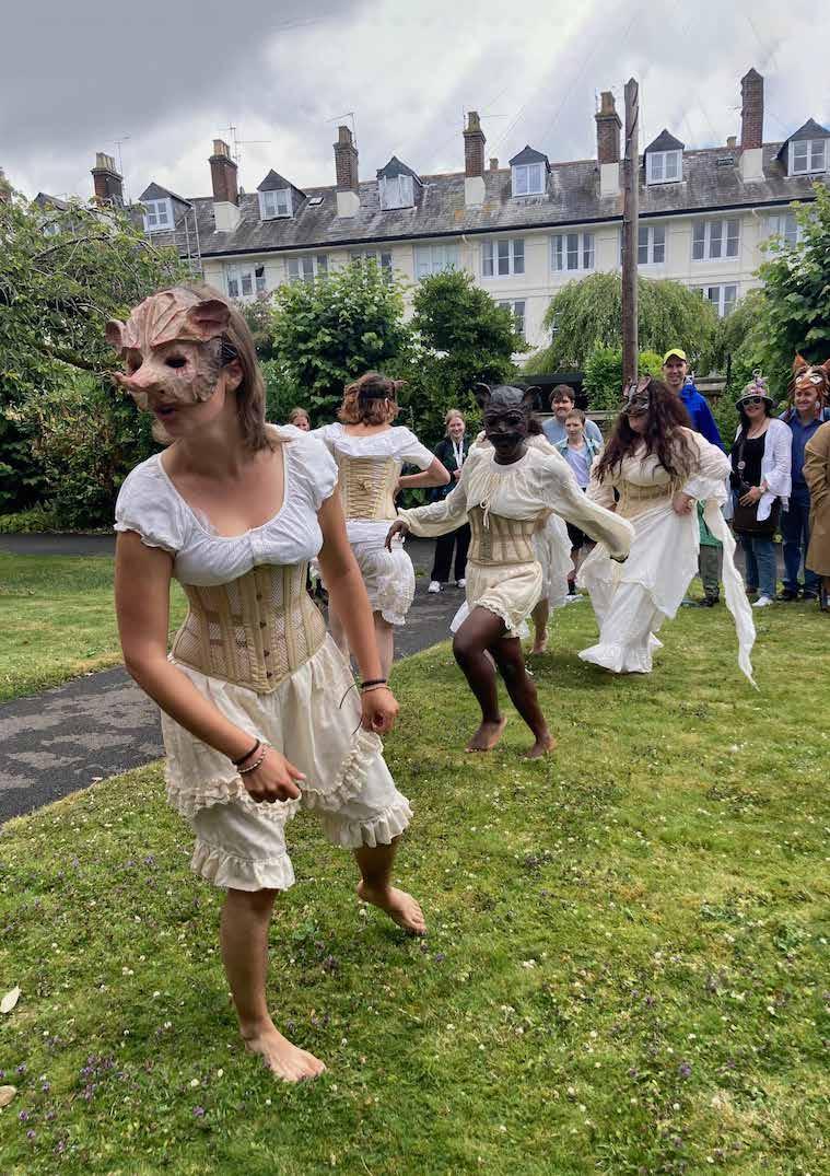 Pictured: Shrewish Women, created by Second Year BA Acting Students and performed at Winchester Hatfair, 2024.