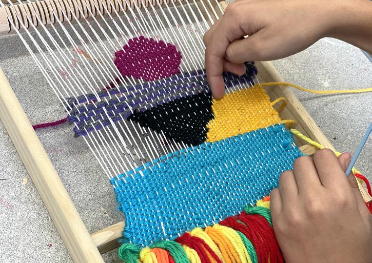 Sixth graders have been learning how to weave on a loom, a skill practiced for millenia by communities around the world. We looked at how weaving was one of the earliest art forms borne out of necessity and how it evolved to be a symbol of culture and identity. We also considered the concept of “women’s work,” why fiber arts have traditionally been relegated to the domestic sphere, and how contemporary artists are redefining the medium. Students designed their own patterns and learned techniques such as the soumak weave, weft interlacing, and adding tassels. During the process, we also found ourselves marveling at how weaving can be a form of mindfulness as the class periods quickly flew by while students were engaged in their work.