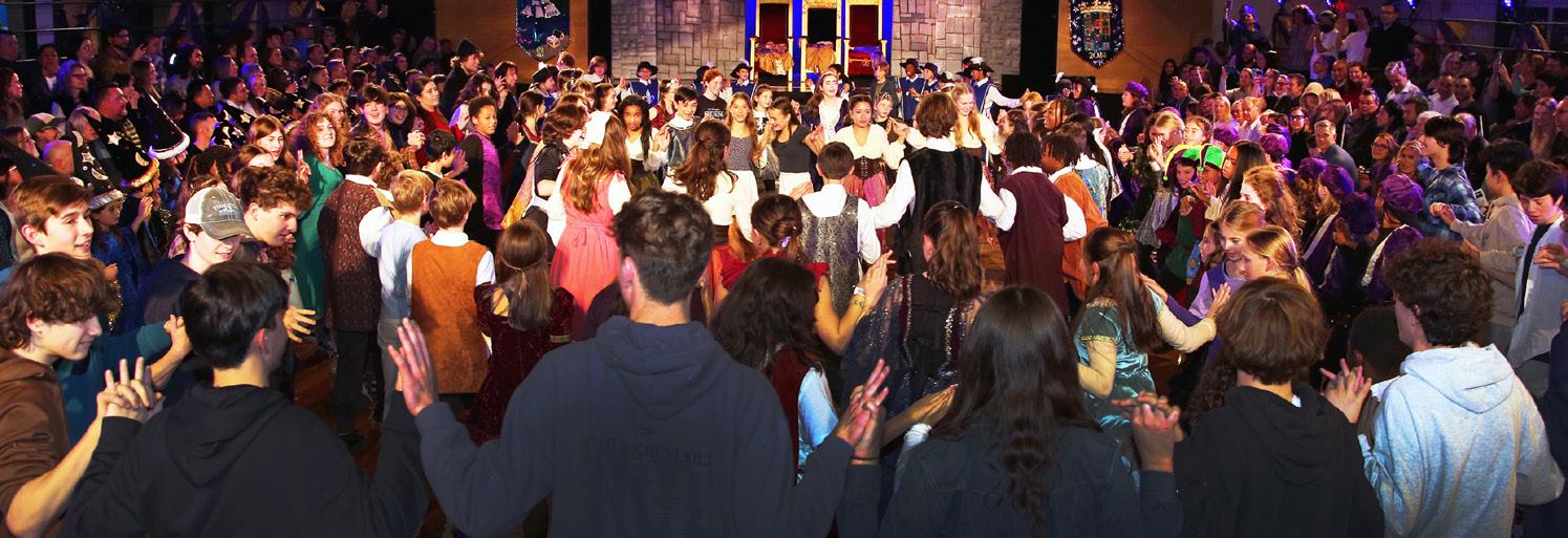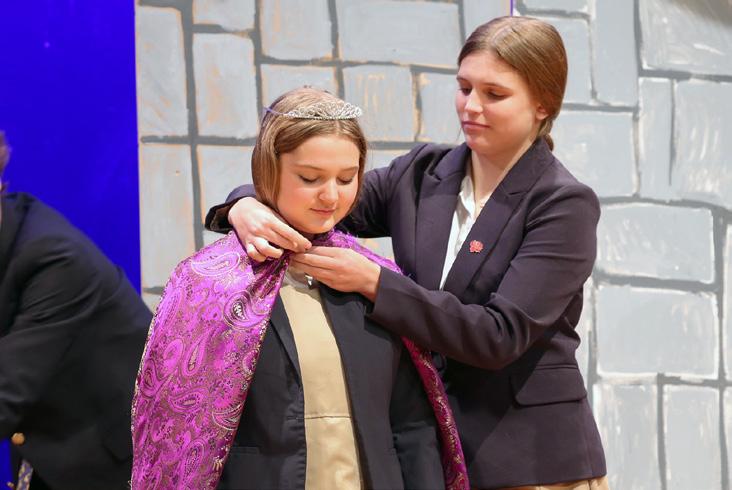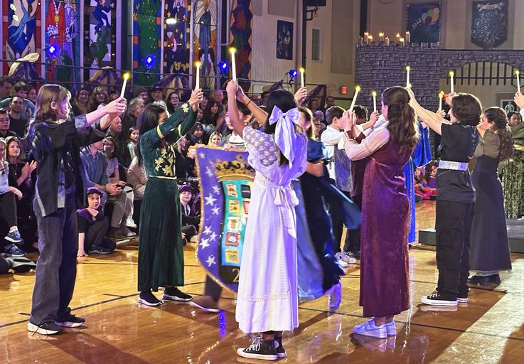 Another significant Winterfest tradition is the annual creation and reveal of the royal banner. Each year, Mrs. Ponden collaborates with the graduating class to bring a concept to life through her magical craftsmanship. The banner is first unveiled to the eighth graders in a special moment. Subsequently, it is presented to the entire Unquowa community during the candle dance at the beginning of the evening Winterfest performance. This year’s banner perfectly captured the Winterfest theme, exceeding all expectations and becoming the best one yet!