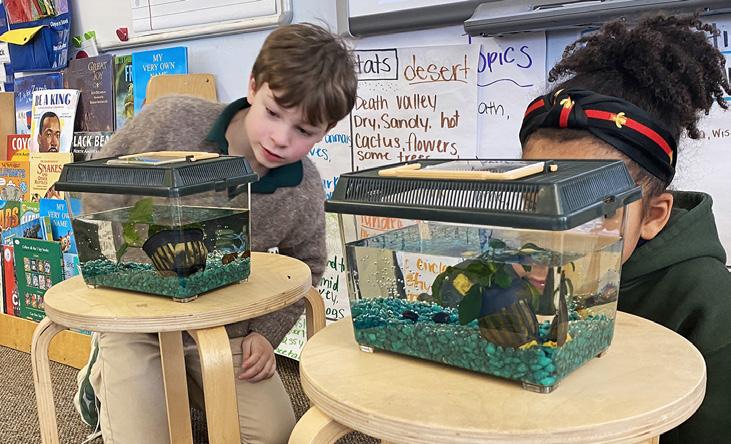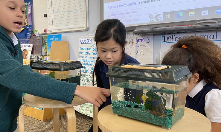 Excitement bubbled as we explored the realm of freshwater habitats! Second graders delved into the ways plants and animals thrive in various water environments to get what they need. Students eagerly surrounded our new freshwater snails, brimming with curiosity. Equipped with magnifying glasses and notebooks, they studied the snails’ slow movements, detailed shells, and recorded their interactions within the watery surroundings.