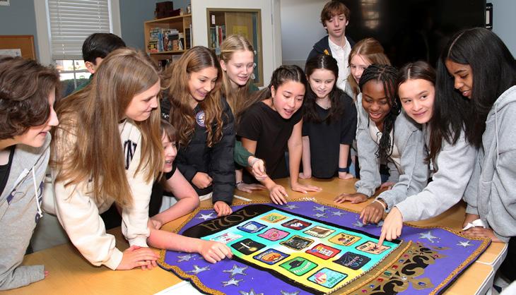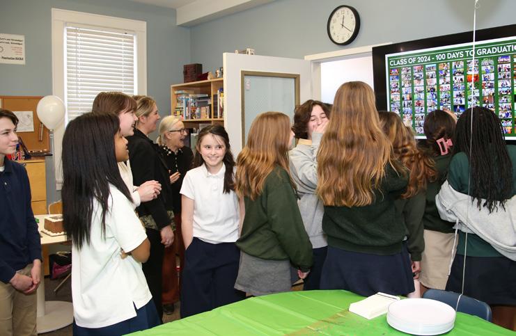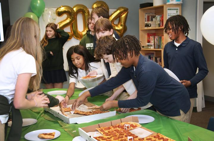 Both Lower School and eighth grade students recently celebrated the big number 100! On the one hundredth day of school the younger students, who will say they are now one hundred days smarter, had a blast with various activities in their classrooms centered around everything one hundred. Meanwhile, a few days later in Upper School, Ms. Lauer and the eighth grade advisors surprised the graduating Class of 2024 with a spirited pizza and cake party to commemorate their exciting countdown… only 100 days left until graduation!