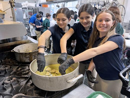 Grade four spent time studying the five regions of the United States. We wrapped up our journey of the Southeast, reading about its diverse population and melting pot of customs and cultures. We were drawn to some of the foods we read about, so we asked Chef Adam if we could craft a Southeast Lunch. The Chefs created a delicious lunch of crispy chicken fingers with homemade BBQ sauce, roasted corn, vegetarian gumbo and for dessert, beignets! We eagerly assisted in making the beignets, a New Orleans treat of tasty fried dough with a hearty sprinkle of powdered sugar! Before lunch, we presented the menu to both Lower and Upper School students, providing a brief background on each dish.