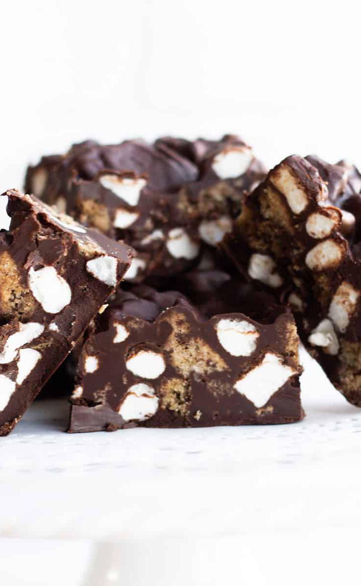 6. Fold the cookie pieces into the remaining melted chocolate mixture in the mixing bowl, and then add the marshmallows.