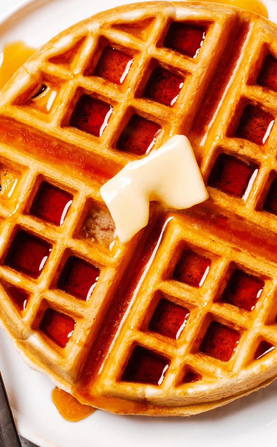6. Pour batter onto the hot waffle iron and cook until golden brown and the iron stops steaming, 3 to 5 minutes.