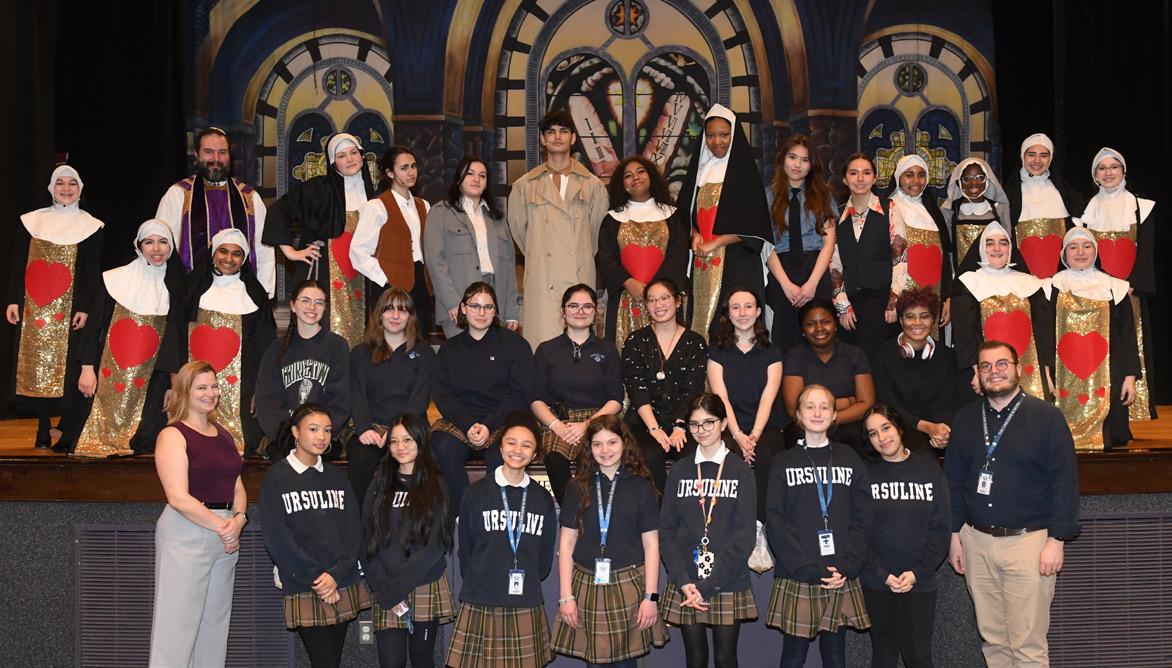 As the third quarter nears its end, students and teachers have begun to prepare for the long nights and stressful events that will accompany the final leg of the school year. What better way to temporarily set aside our burdens and find our strength together once more, than to enjoy a night of song and dance provided by our very own TUS Drama Club? Written by Glenn Slater with music composed by Alan Menken, Sister Act Jr. is based on the smash hit 1992 film Sister Act and its musical counterpart, the Tony-nominated Broadway musical Sister Act. The musical’s leading lady, a nightclub performer by the name of Deloris Van Cartier attempts to navigate the new rigid lifestyle that she must uphold to maintain a low profile while hiding among nuns in a convent, bringing a new perspective on emotional expression to the convent through her music, and in turn discovering a new look on life and friendship through her bonds with the sisterhood. This month, during a time in which we most earnestly need a reprieve from our daily responsibilities, the TUS Drama Club once again delivers a musical masterpiece that aims to remind the Ursuline community of what it means to be a part of the Serviam mission.