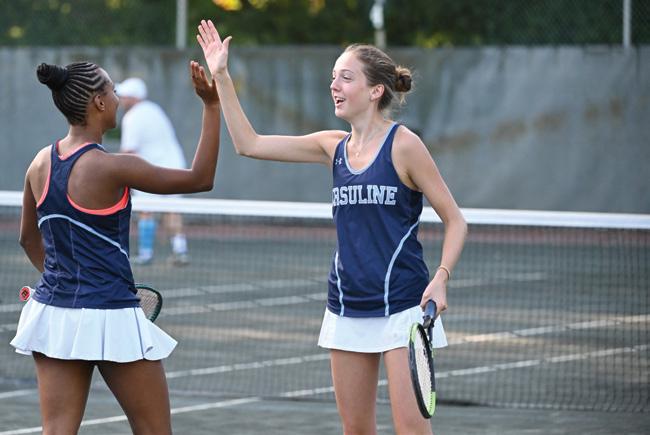 Athletics programs at Ursuline build teamwork, resilience, and confidence skills in our young women. Our tradition of athletic excellence and accomplished coaching staff, paired with our top-notch facilities including Kelly Mac Field, Tully Family Gymnasium, and three tennis courts—allow students to pursue their passions and showcase their Ursuline pride.