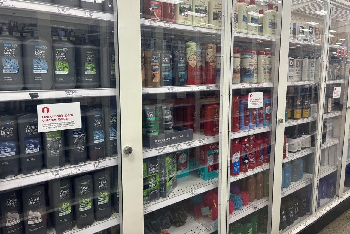 Locked cabinets at Target in Mission Valley hold basic necessities. Sands Chipman/The USD Vista