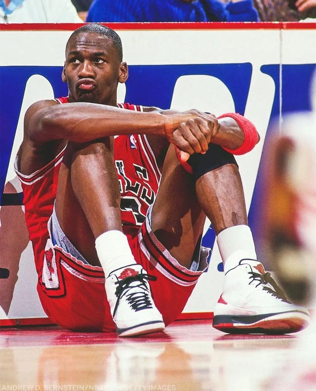 Michael Jordan is pictured wearing his UNC college shorts under his Bulls uniform for an NBA game. Photo courtesy of @meatpack/Instagram