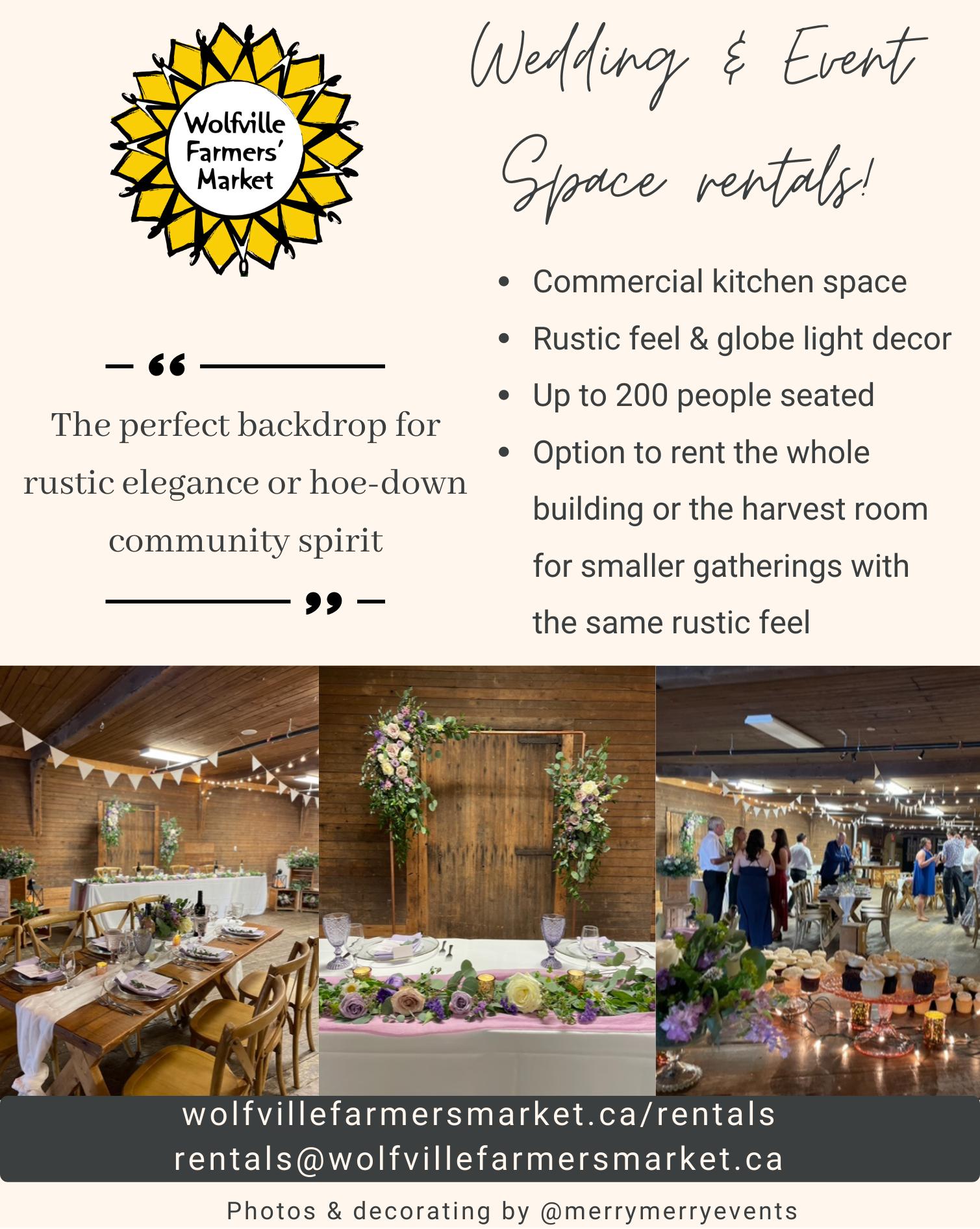 WOLFVILLE: Carl's Your Independent Grocer, Eos Natural Foods, Just Us! Café, T.A.N. Coffee, Library, Wolfville Farmers' Market