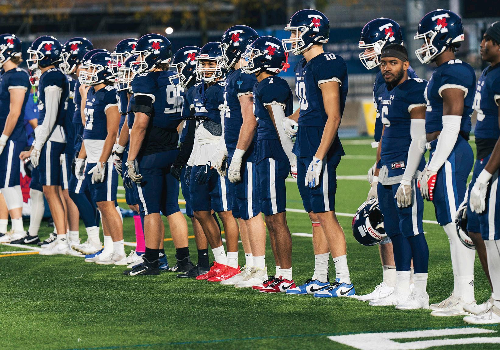 The Blues line up in their last home game of the season. JASON WANG/THE VARSITY