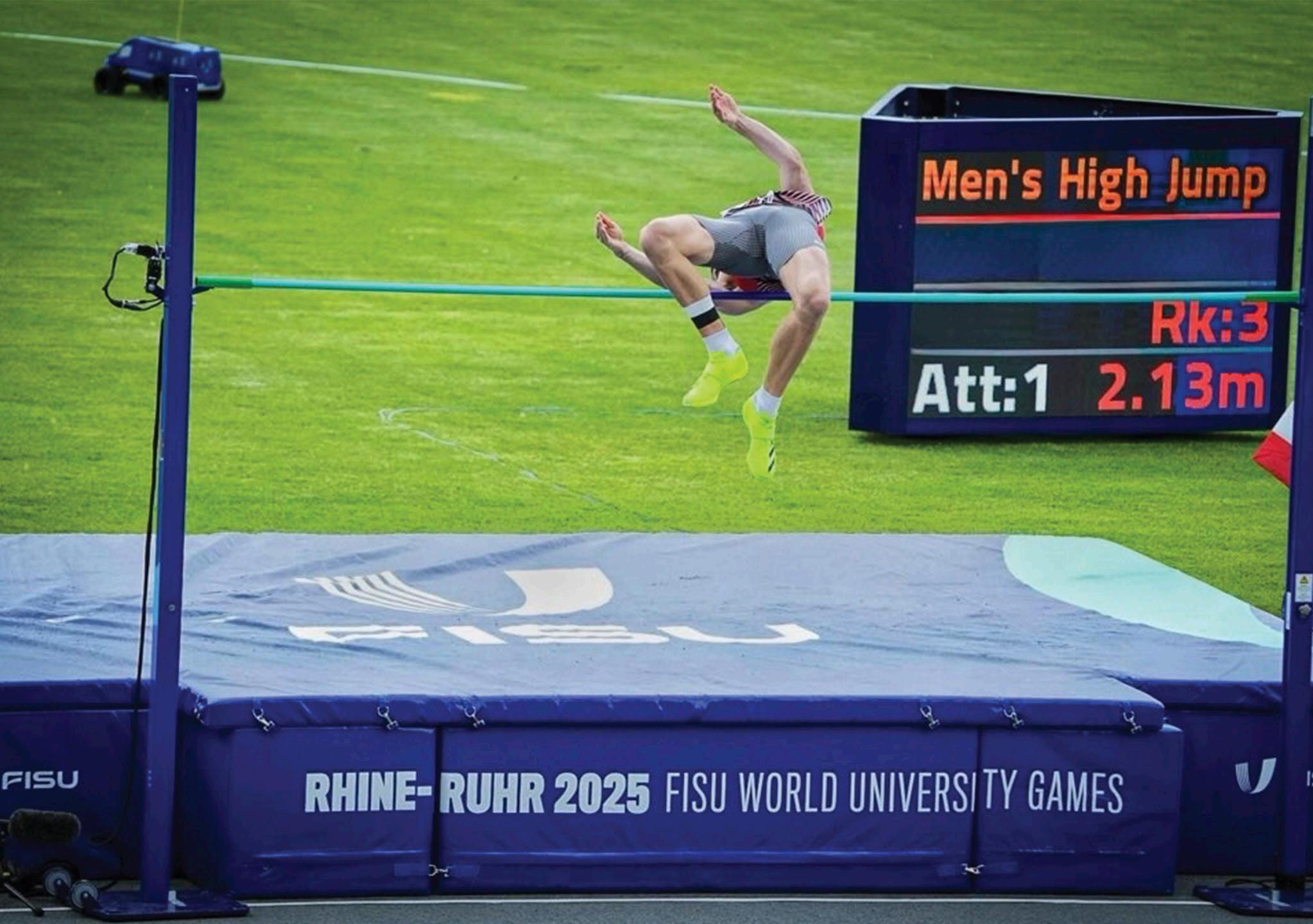 environment around him. He earned the title of U SPORTS top scholar athlete for the 2023–2024 season, which is awarded to student-athletes who have excelled both academically and athletically. Grout has contributed greatly to the success of U of T’s track and field program. In addition to his two national titles, he took second place at his other two appearances at the U SPORTS Championships. He also claimed gold at the Ontario University Athletics (OUA) Championships three years in a row from 2022–2024. Most recently, Grout represented Canada at the International University Sports Federation (FISU) World University Games in Rhine-Ruhr, Germany, where he placed ninth.