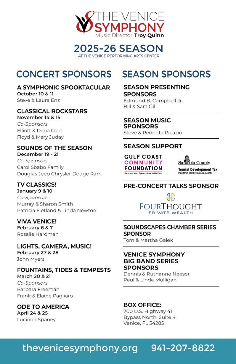 Thank you for being such an important part of The Venice Symphony family. We look forward to sharing all this and more with you as our season continues.
