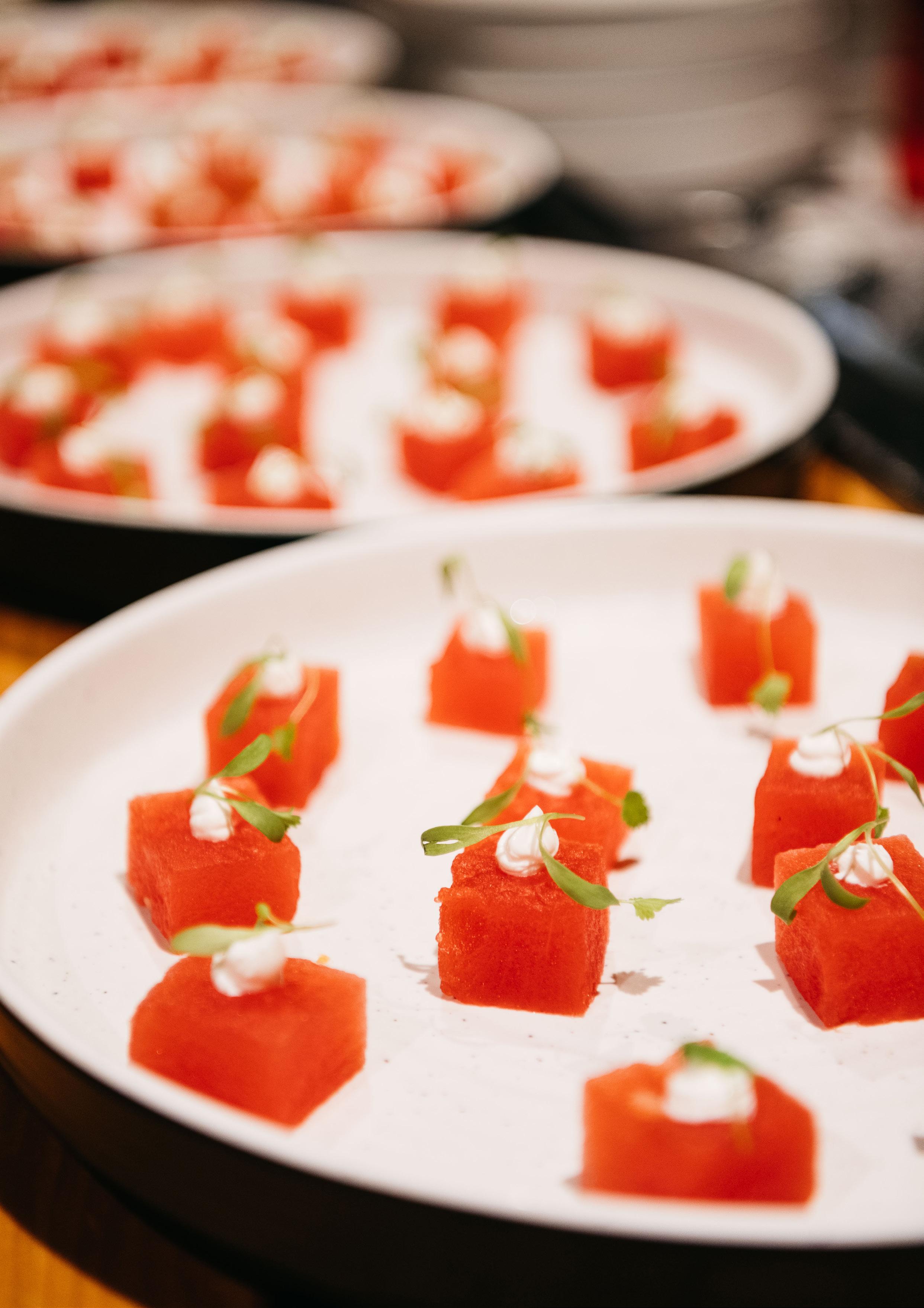 Compressed & charred watermelon, whipped feta & micro coriander (v, gf)