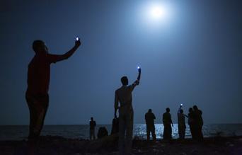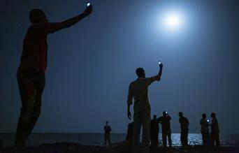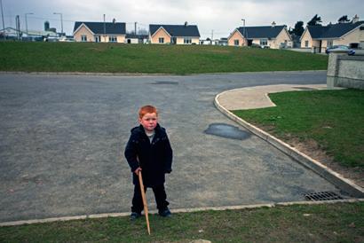 Here and there, Murphy sails close to the tropes of an older kind of photography about another Ireland: red-haired children, big skies, crowds at GAA matches and race meetings. But this Ireland endures too and, if anything, has grown stronger since the country’s late surge towards modernity. For me, his images work best when they steer clear of the overfamiliar for a more oblique and thus more suggestive approach: a trail of footprints in concrete rendered golden by streetlights or a group of young footballers huddled in a ring beneath the moonlight, the goalposts in the background stark against shadowy trees. Another Ireland is evoked, a still tentative place edging its way towards an uncertain future once again.