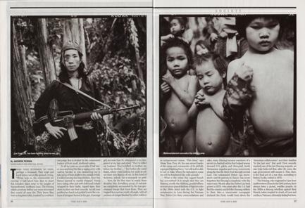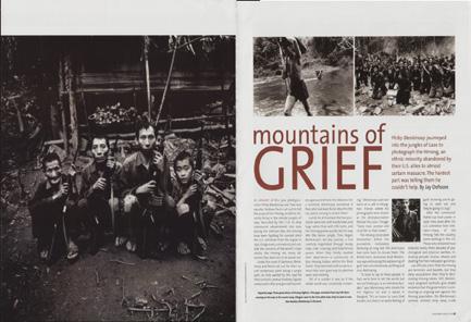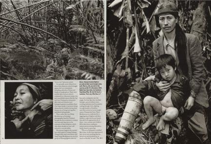 Believing that we are Americans returning to lead them all to safety, Hmong veterans of the CIA’s Secret War in Laos and their families fall to their knees crying as my colleague and I approach their secret camp. The group of some 840 people is one of several that has been targeted by Lao Government troops continuously since the end of the Vietnam War. Pha Sie Cliffs, Xaysomboune Military Zone, Laos, January 2003.