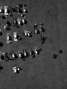 For the photographs in his Blue Sky Days series, Tomas van Houtryve attached a camera to a small drone and flew it, through blue American skies, over the kind of gatherings that might engage the attention of drone operators in other parts of the world. A number of related photographic elements converge on the project. First, the giddy bird’s-eye views of early modernists such as Aleksandr Rodchenko and — less spectacularly — André Kertész, who were drawn to the combination of abstracted geometries and vertiginous human gestures. Second, the technology of remote or