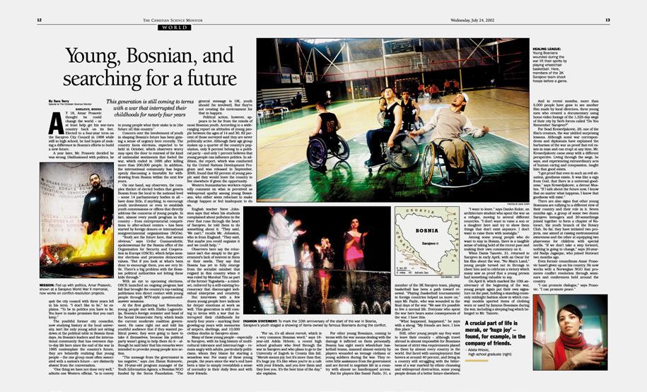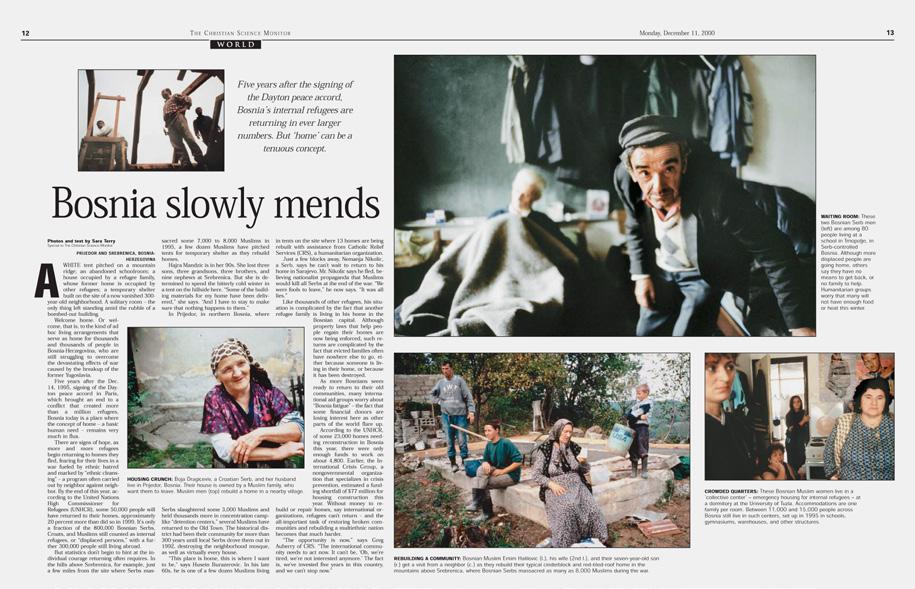 I have stood on the freshly laid concrete floors of homes being rebuilt by returning refugees, determined to reclaim their land and their lives. was in the crush of a group of young people, crowded in the square outside the National Theatre in Sarajevo, cheering wildly as they greeted Danis Tanovic, fresh from his Oscar victory for his film about the war, “No Man’s Land” — a victory he