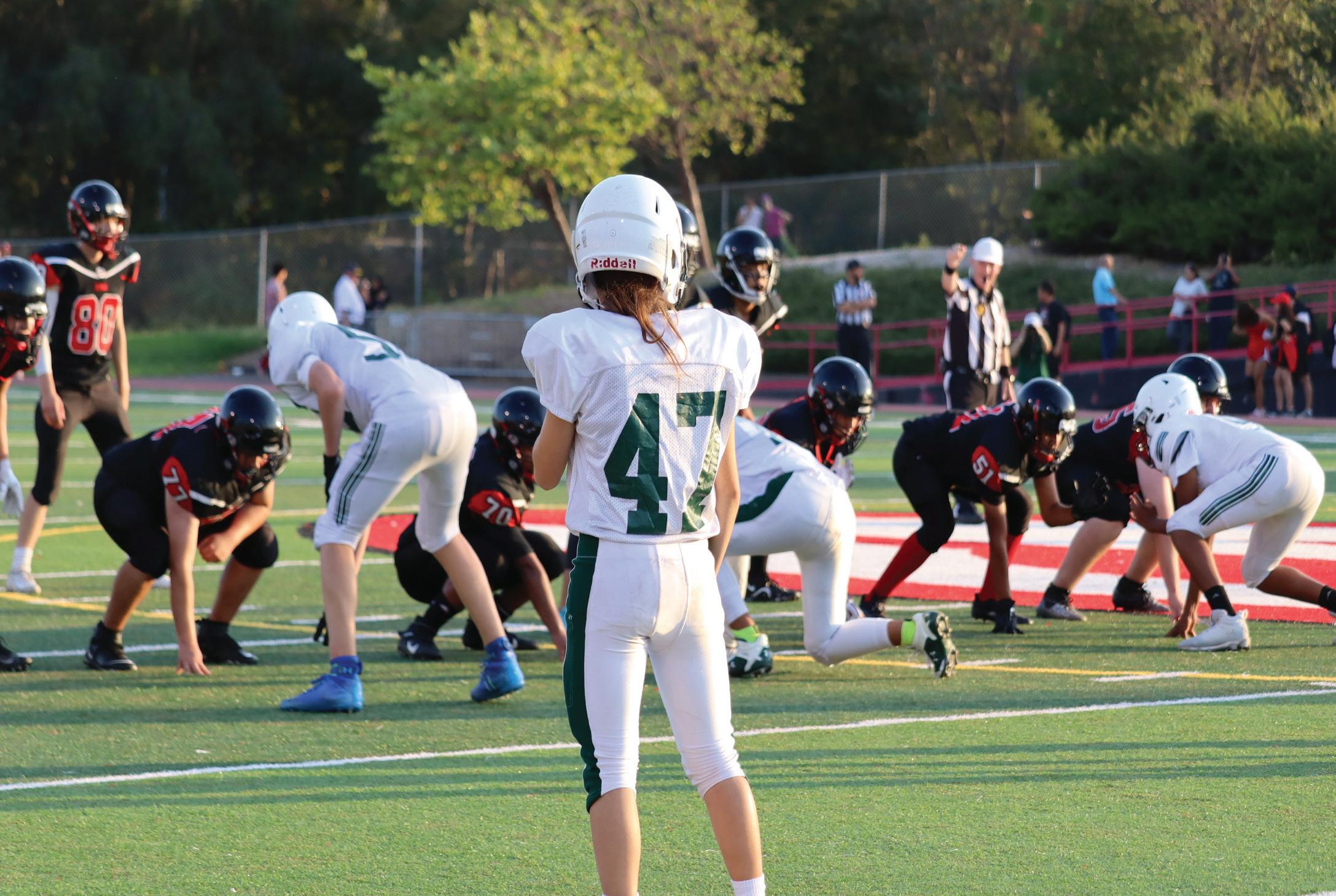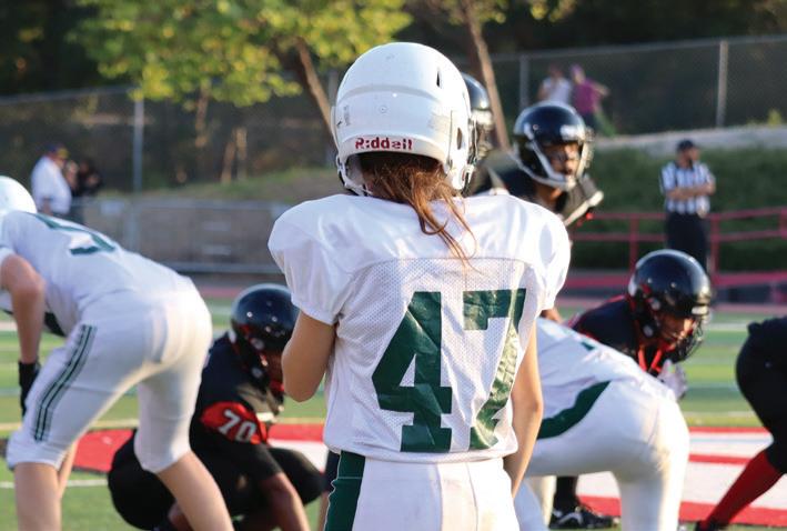 Freshman Lara Saslow, the jack of all trades for the JV football team, is quickly setting a new standard. She is swiftly changing the spectrum of the sport as she learns the game.brings to the field. He enjoys that she rises up to the challenge and the size differences and does not back down from it.