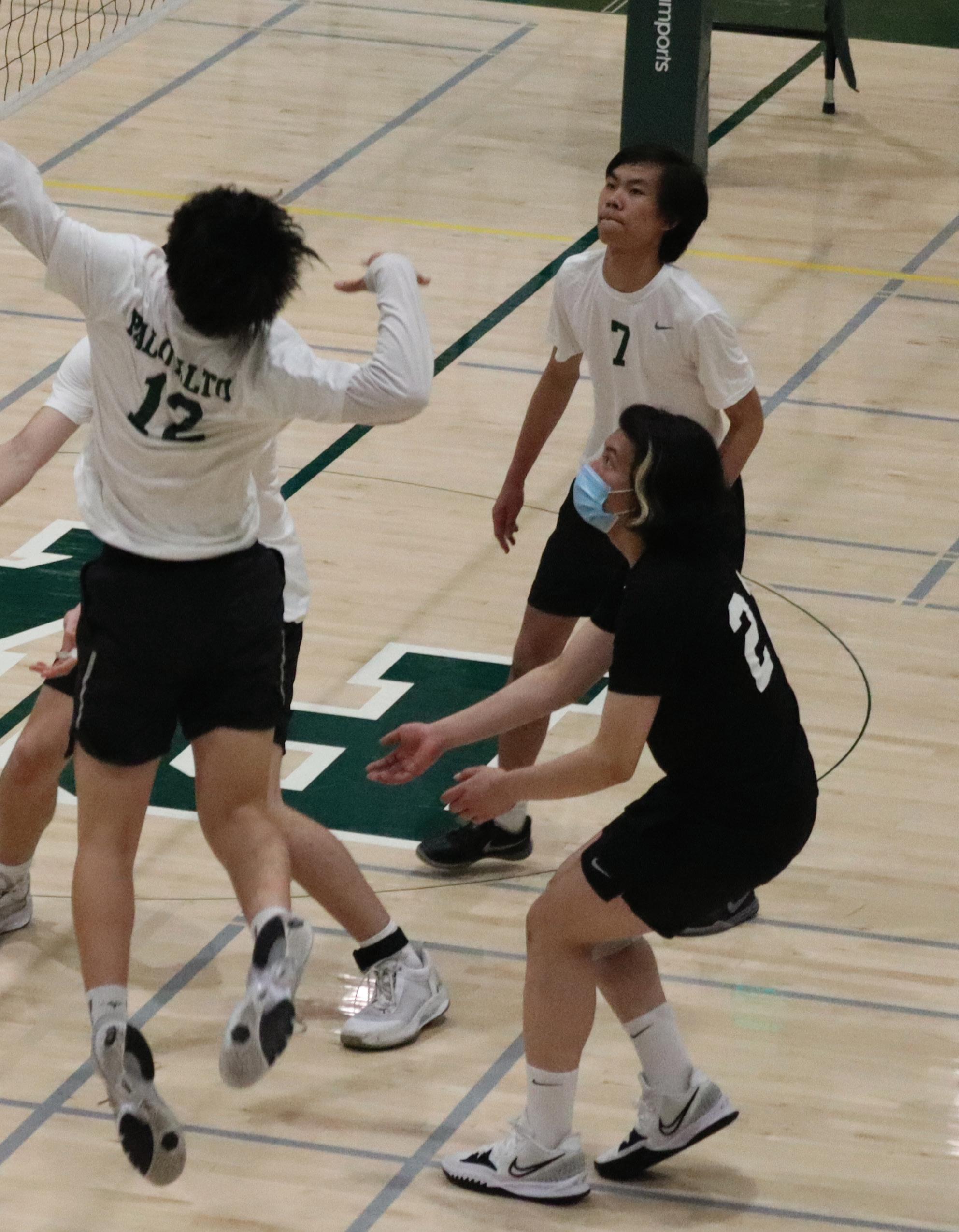 Julian Hong (center) and the boys volleyball team finished the season second in league, just missing the cut to advance to CCS. “I believe this team can make CCS next year,” Hong (‘25) said. “We have the talent and several returning junior starters.”