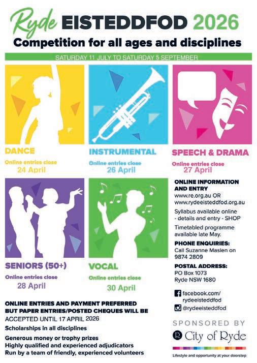 For more information on these events and others happening in the City of Ryde throughout April, go to: ryde.nsw.gov.au