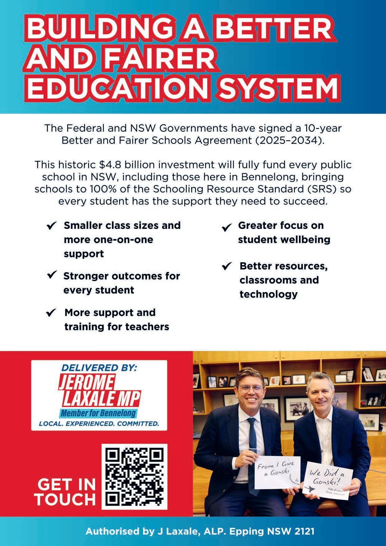 My office continues to assist residents with a range of state government matters, and we are always pleased to hear from local community groups, schools and organisations. If you have an upcoming event or initiative you would like to share, please feel welcome to contact my office. lanecove@ parliament.nsw.gov.au.
