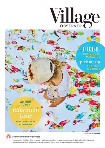 Proceeds from The Village Observer supports residents of Lane Cove, Hunters Hill, Ryde, Willoughby and North Sydney, via Sydney Community Services – a local notfor-profit organisation that helps people to live a quality and independent life in their own home and in their community.