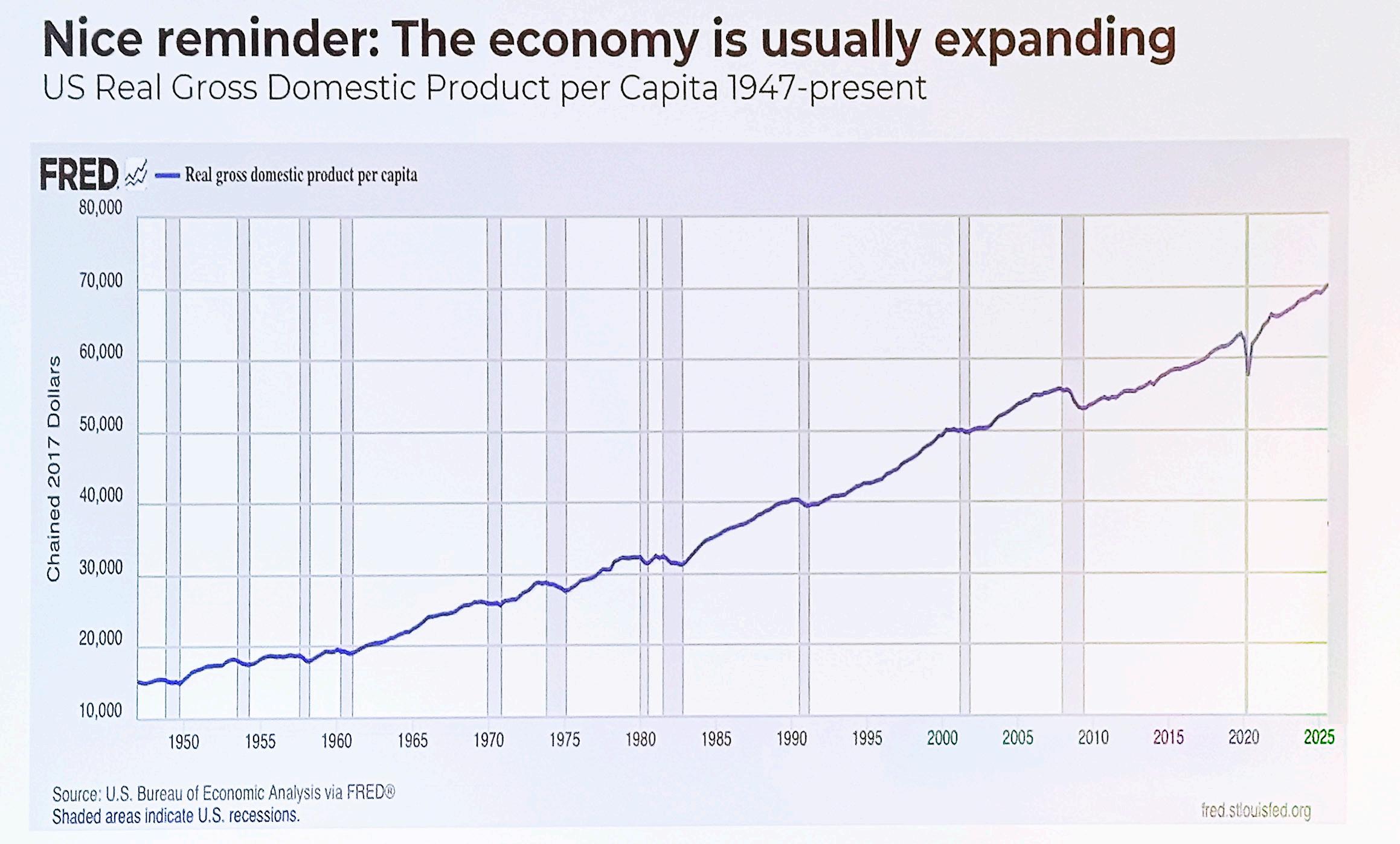 Sobanet submitted, “The economy is usually expanding,” and presented a graph that showed consisted growth of GDP for the past 78 years.