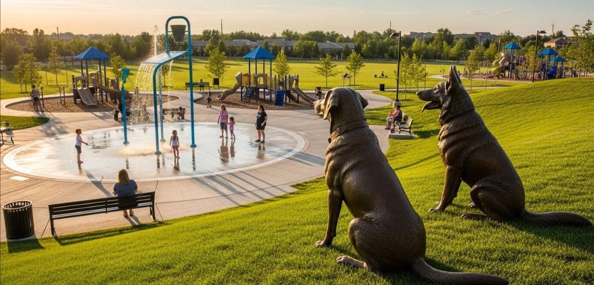 be installed in Centennial Center Park near the splash pad in Fall 2026. K-9s Atlas and Rex were selected by ACSO deputies to represent the unit, in recognition of their exceptional dedication and unwavering commitment to serving our community.