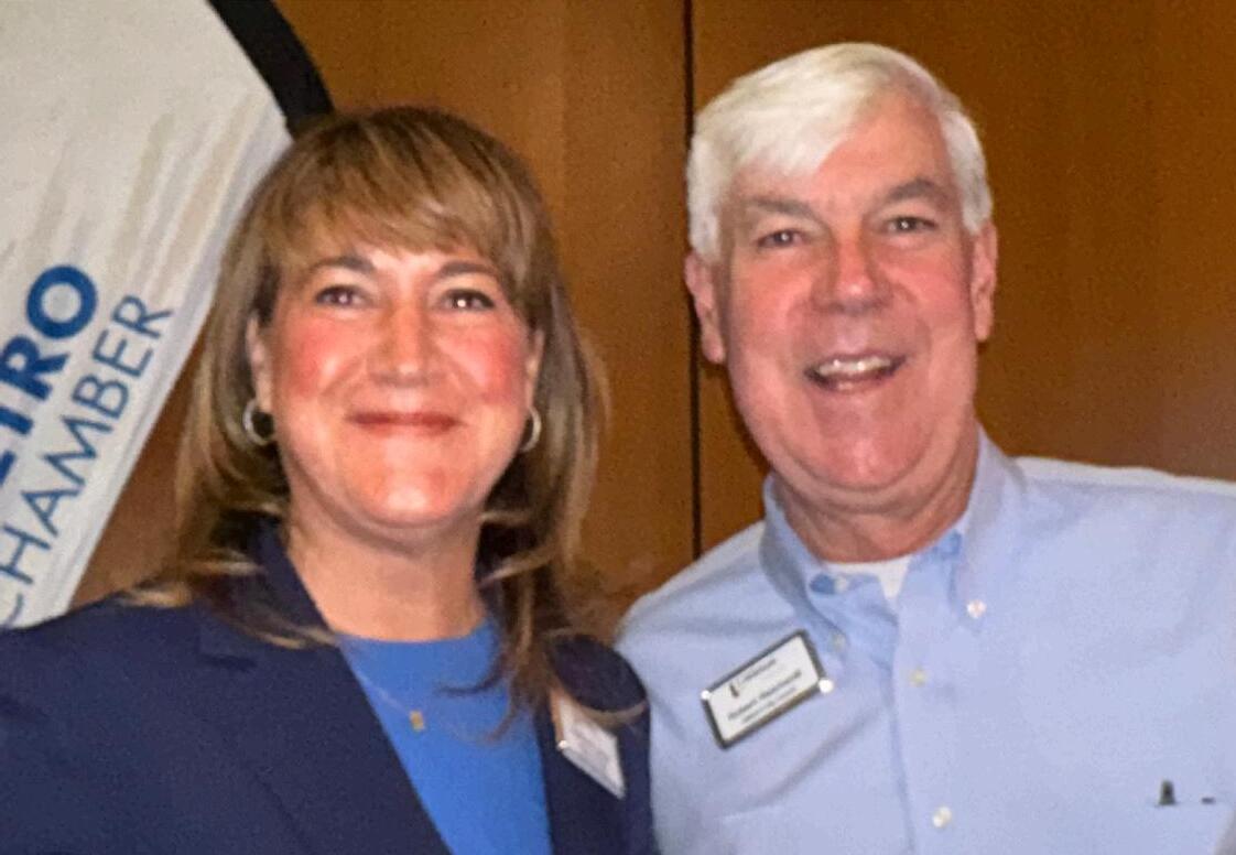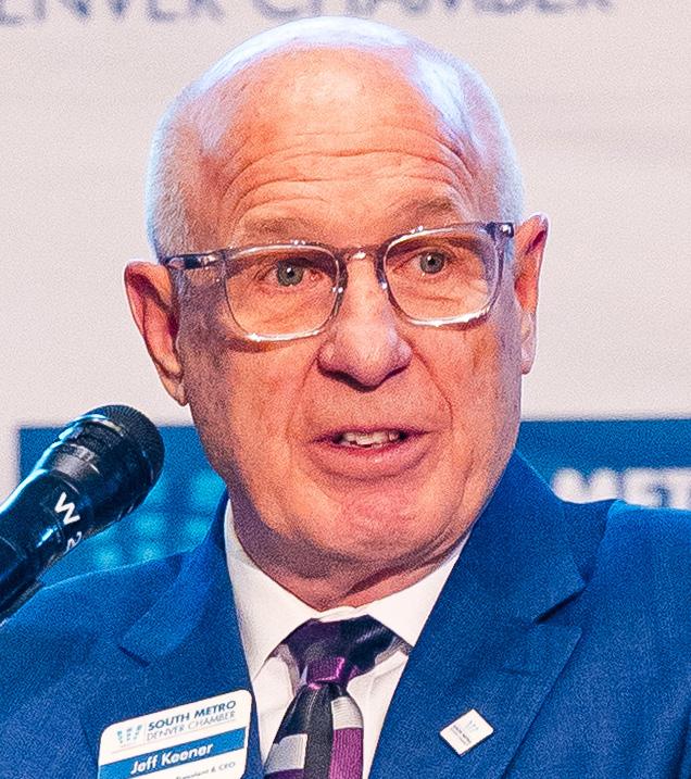 Following a warm welcome from Lone Tree Mayor Marissa Harmon, SMDC President and CEO Jeff Keener acknowledged The Villager’s Man and Woman of the Year, Greenwood Village Mayor George Lantz and Arapahoe County Commissioner Carrie Warren-Gully, before bringing up program moderator Debbie Brown, president of the Colorado Business Roundtable. COBRT “works to strengthen our state’s economic vitality by engaging with elected officials, business and nonprofit leaders, and key strategic partners.”