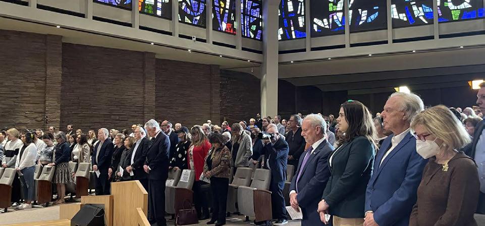 Scott Levin, director of the ADL Mountain States Region, said we often think about the Holocaust at its height, when the Nazis murdered two-thirds of all the Jews in Europe and tried to hide the evidence. He explained, “It didn’t start with bullets or the gas chamber. It started with dehumanizing words…then graduated to institutionalizing laws to segregate Jews, followed by vandalizing their homes, businesses, and places of worship.” Levin continued, “Then, the Nazis just waited to see how others in Germany and across the world would respond, and most peo-