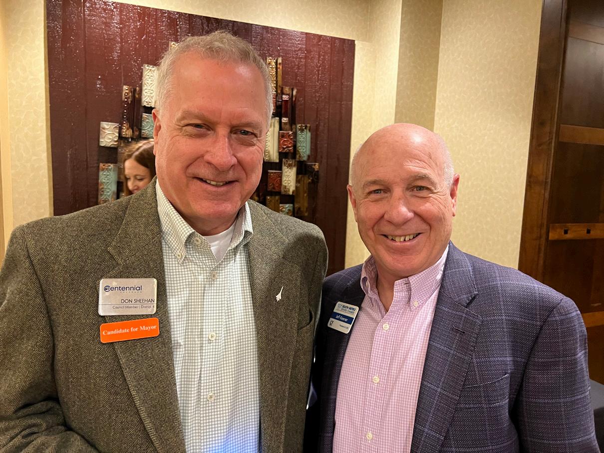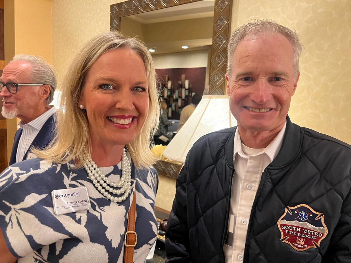 LEFT: Douglas County Republican Women President Deborah Mulvey visits with Centennial Councilman Don Sheehan